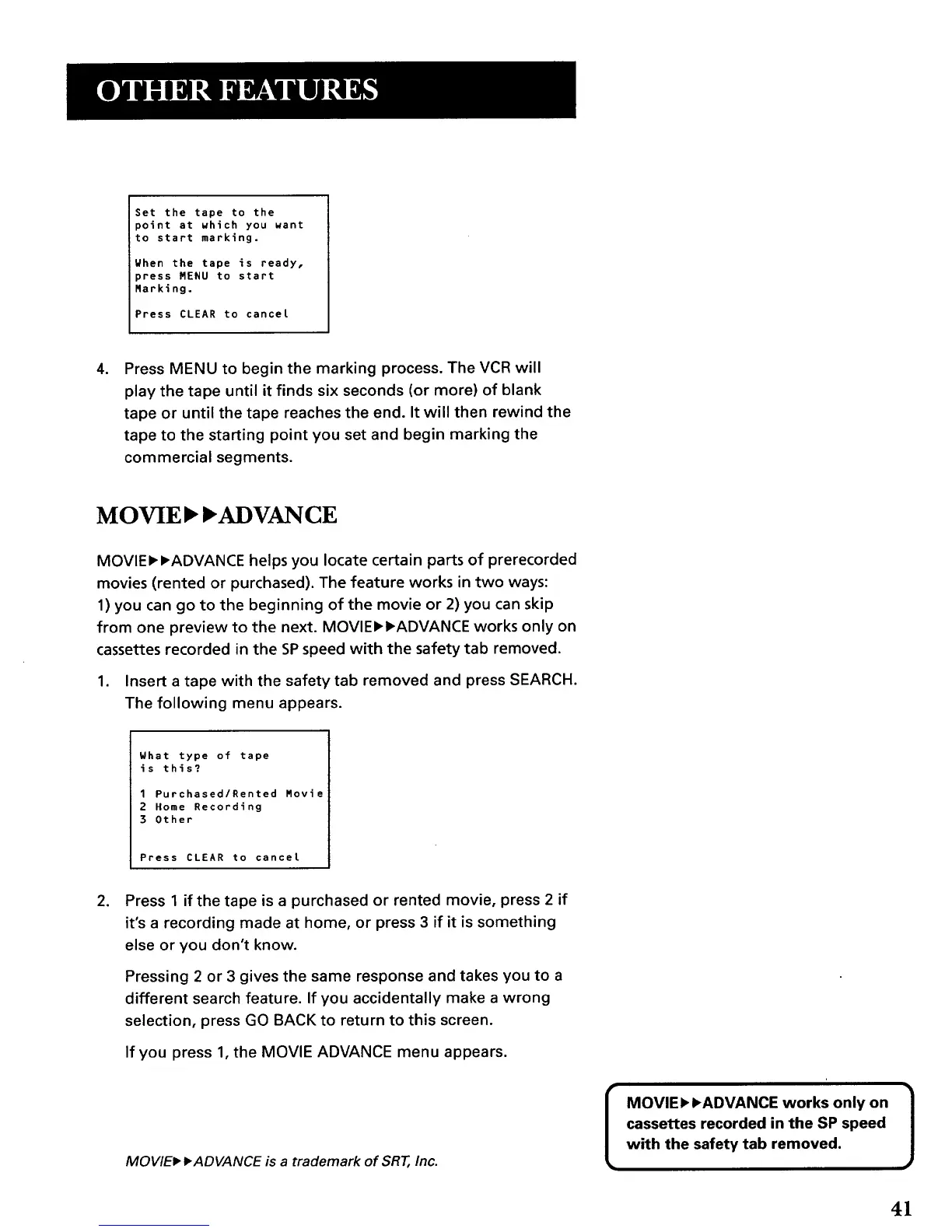 MOVIE,,ADVANCE helps you locate certain parts of prerecorded