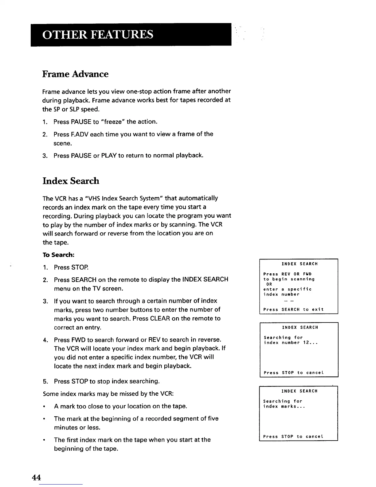 2. Press SEARCH on the remote to display the INDEX SEARCH
