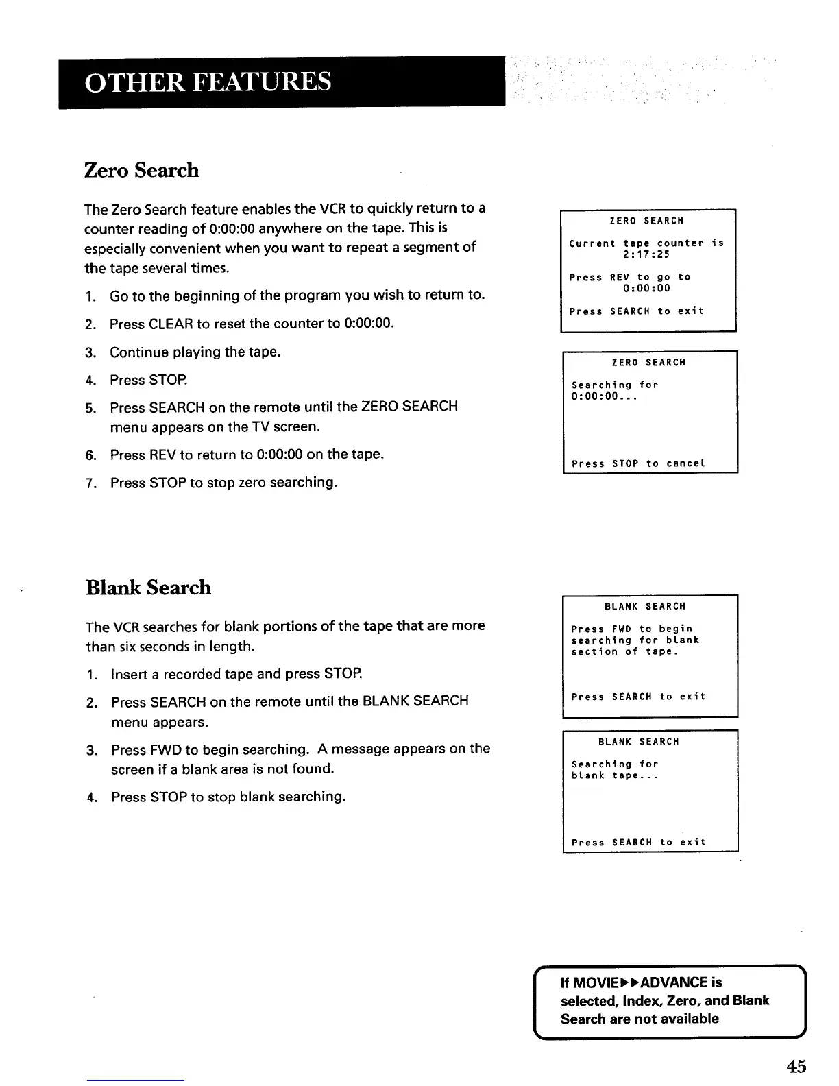 5. Press SEARCH on the remote until the ZERO SEARCH