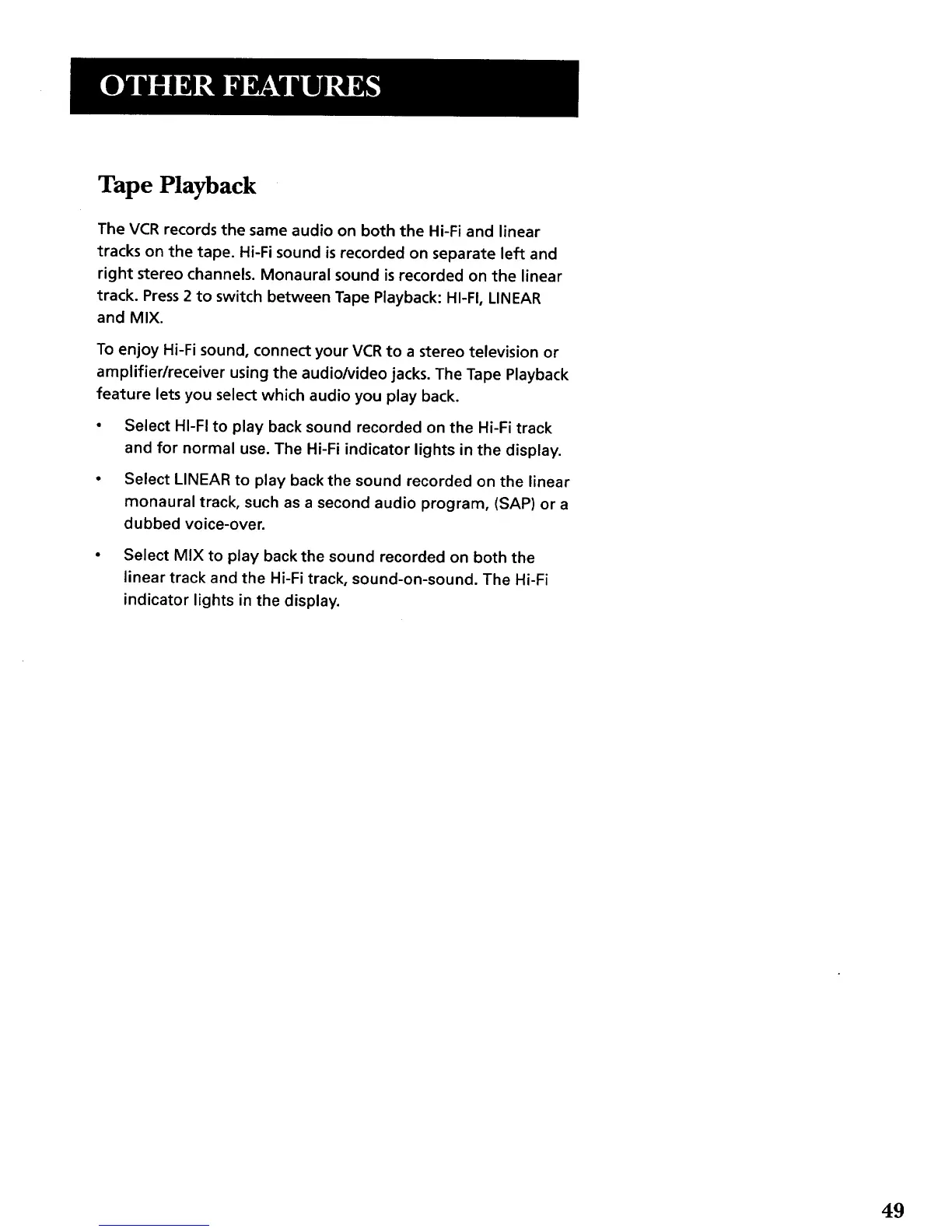 amplifier/receiver using the audio/video jacks. The Tape Playback