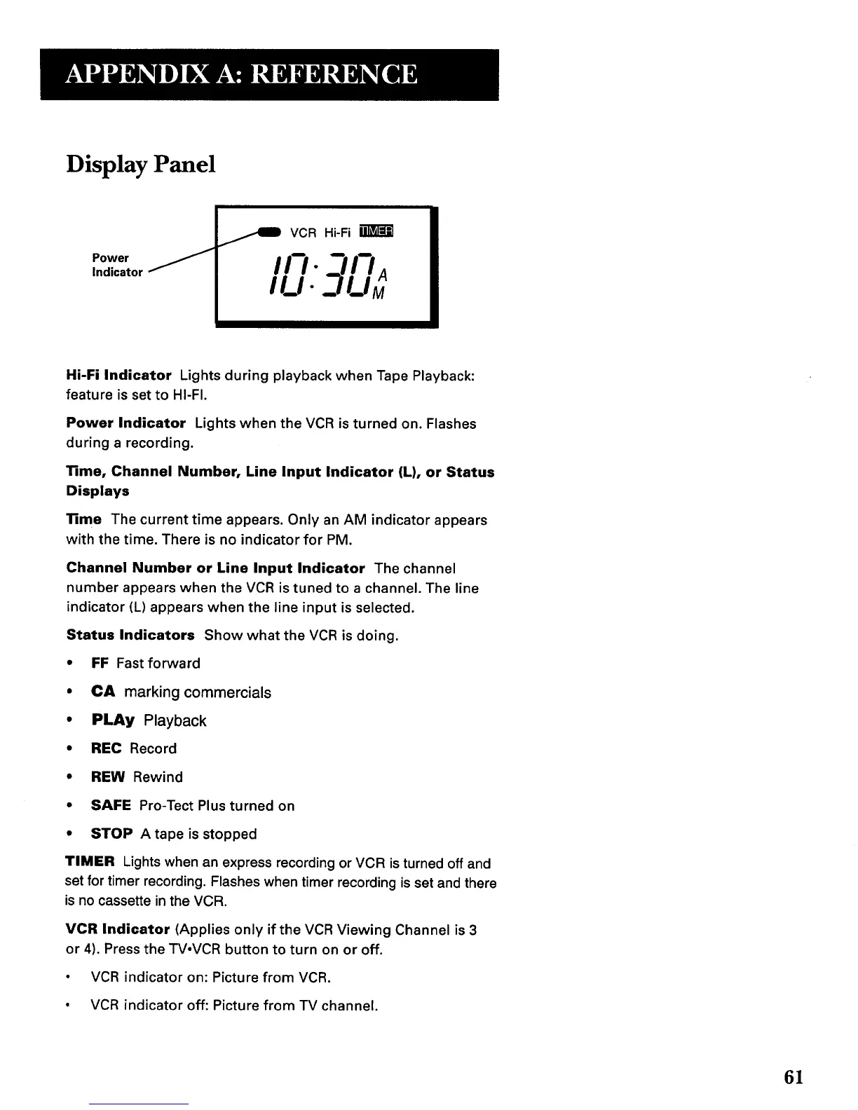 Status Indicators Show what the VCR is doing.