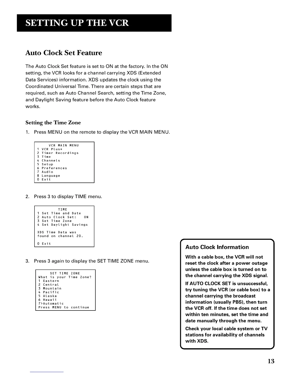 setting, the VCR looks for a channel carrying XDS (Extended