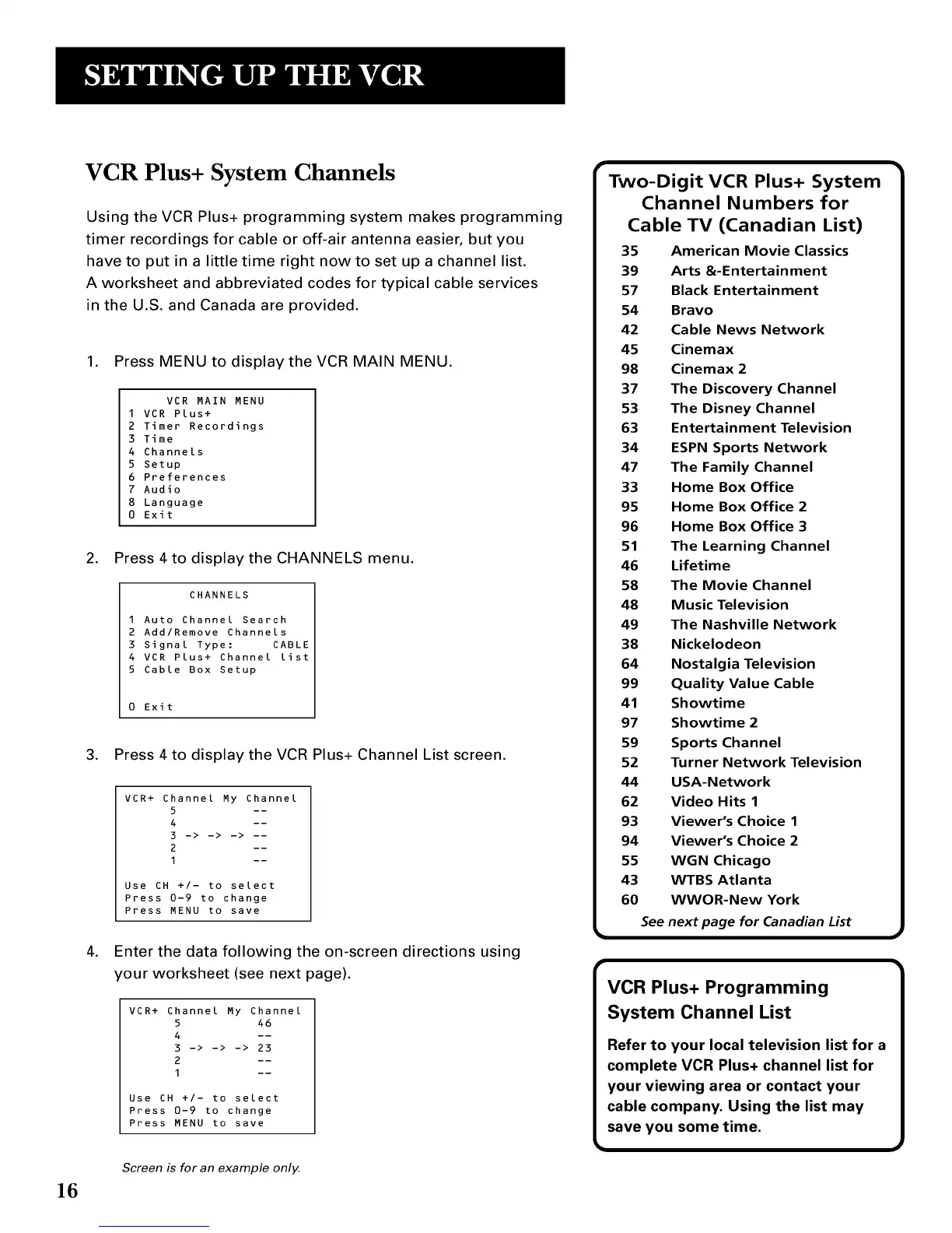 3. Press 4 to display the VCR Plus+ Channel List screen.