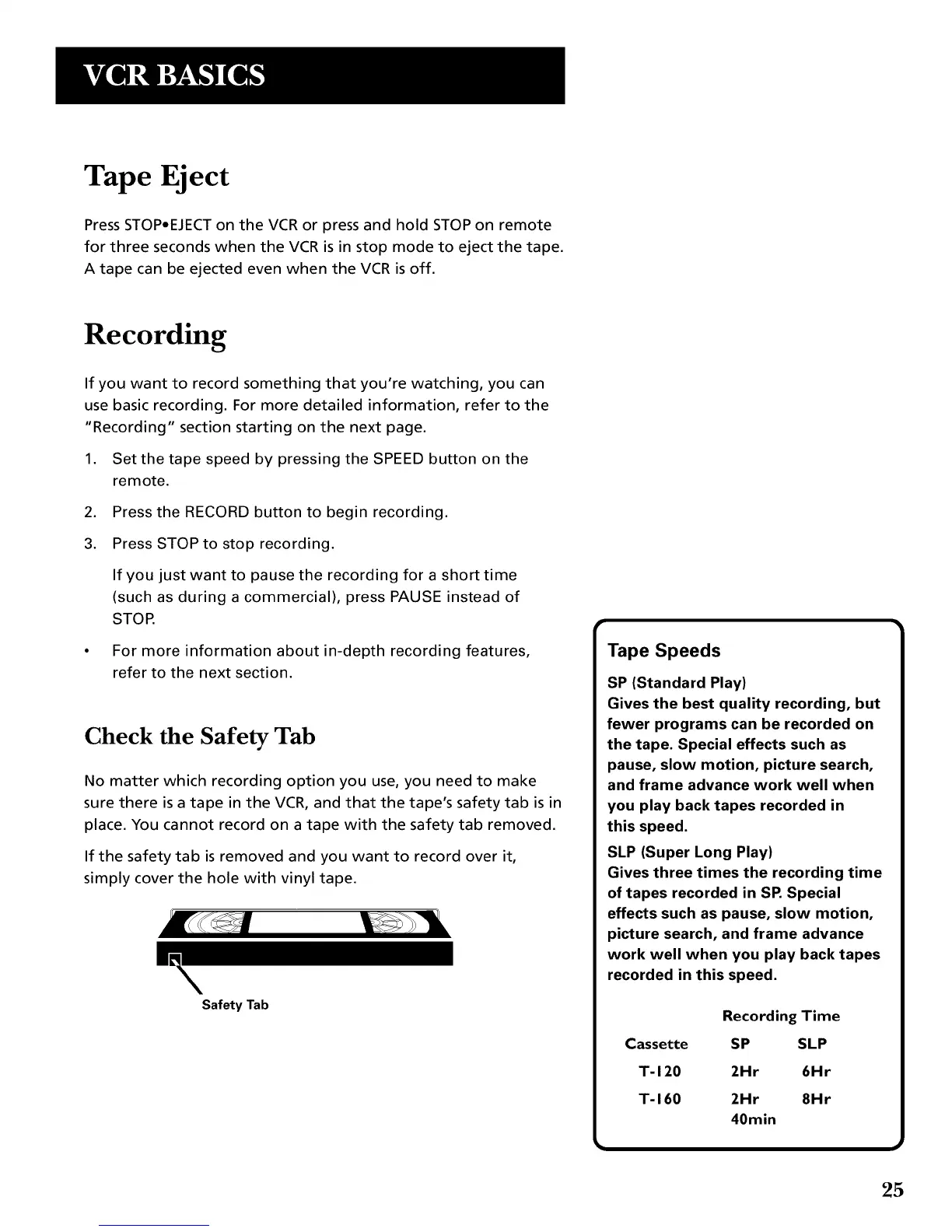 sure there is a tape in the VCR, and that the tape's safety tab is in