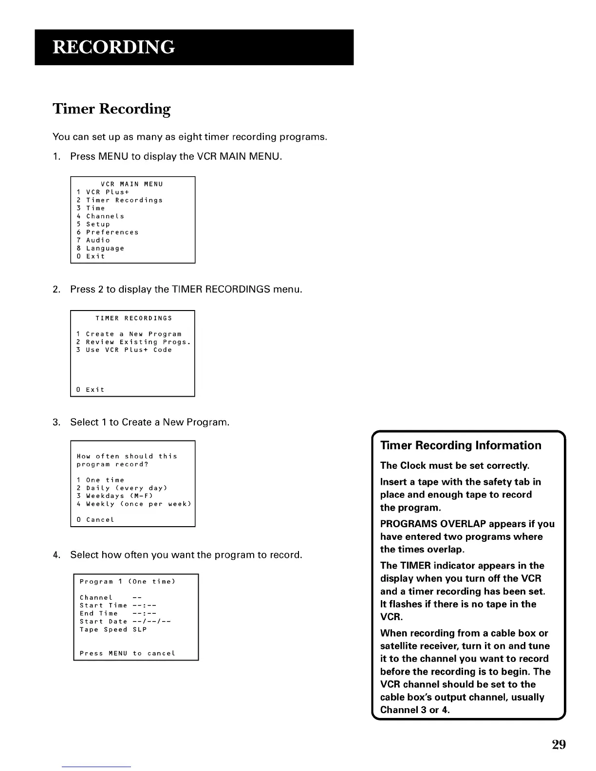 1. Press MENU to display the VCR MAIN MENU.