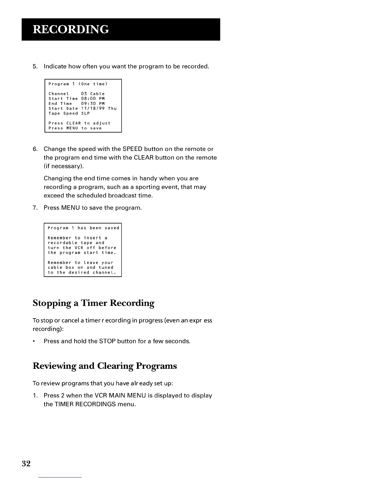 the program end time with the CLEAR button on the remote