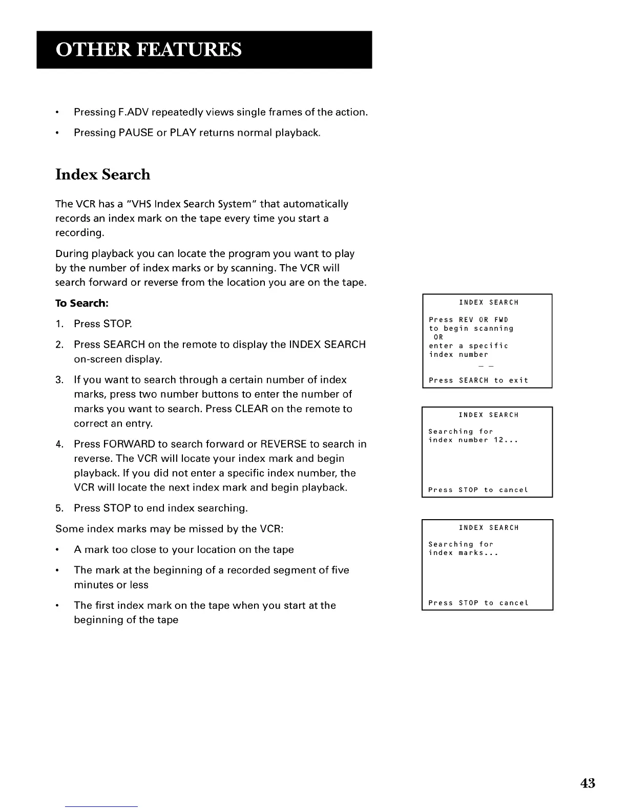 2. Press SEARCH on the remote to display the INDEX SEARCH