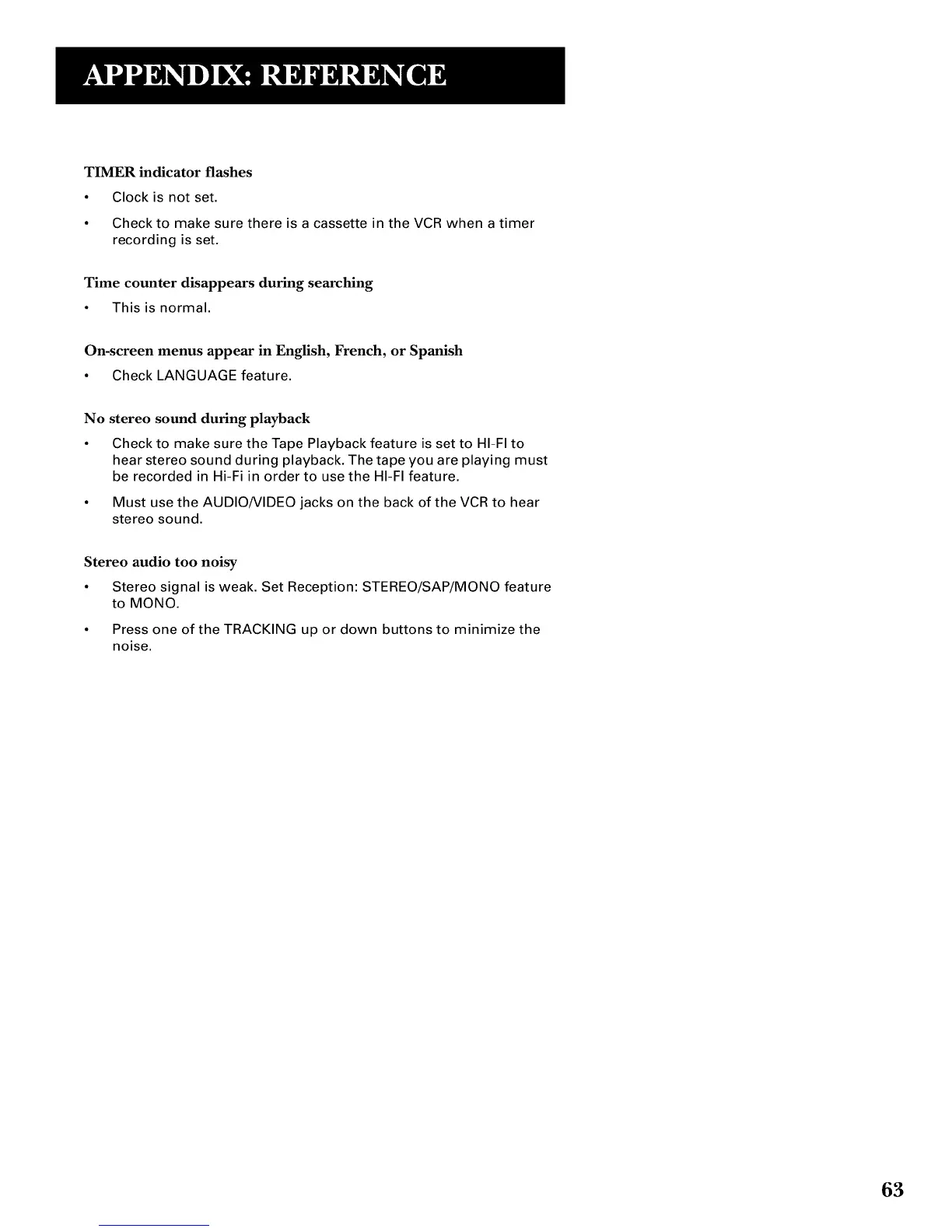 • Must use the AUDIO/VIDEO jacks on the back of the VCR to hear