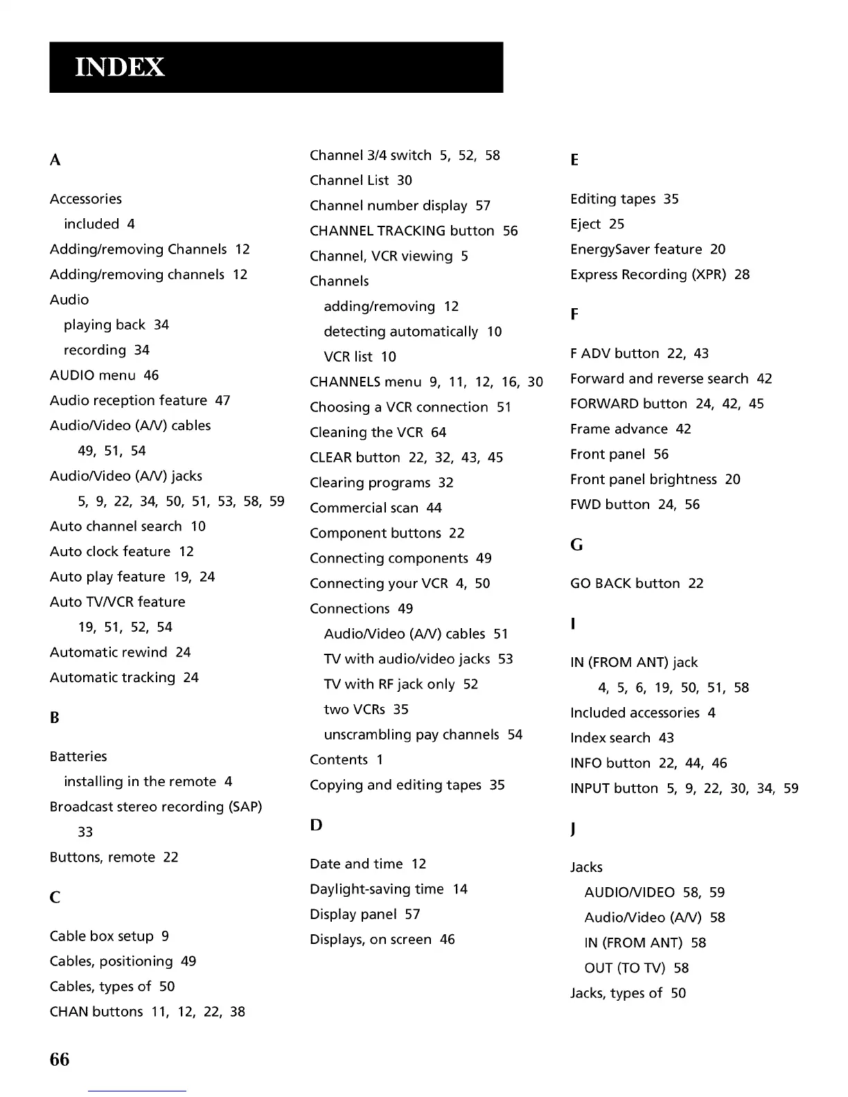 Connecting your VCR 4, 50