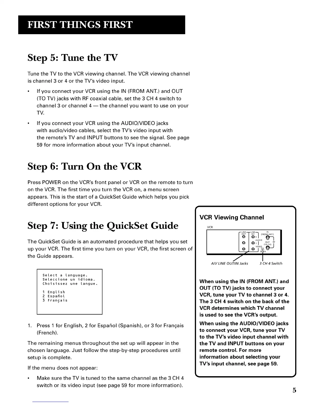 VCR, tune your TV to channel 3 or 4.