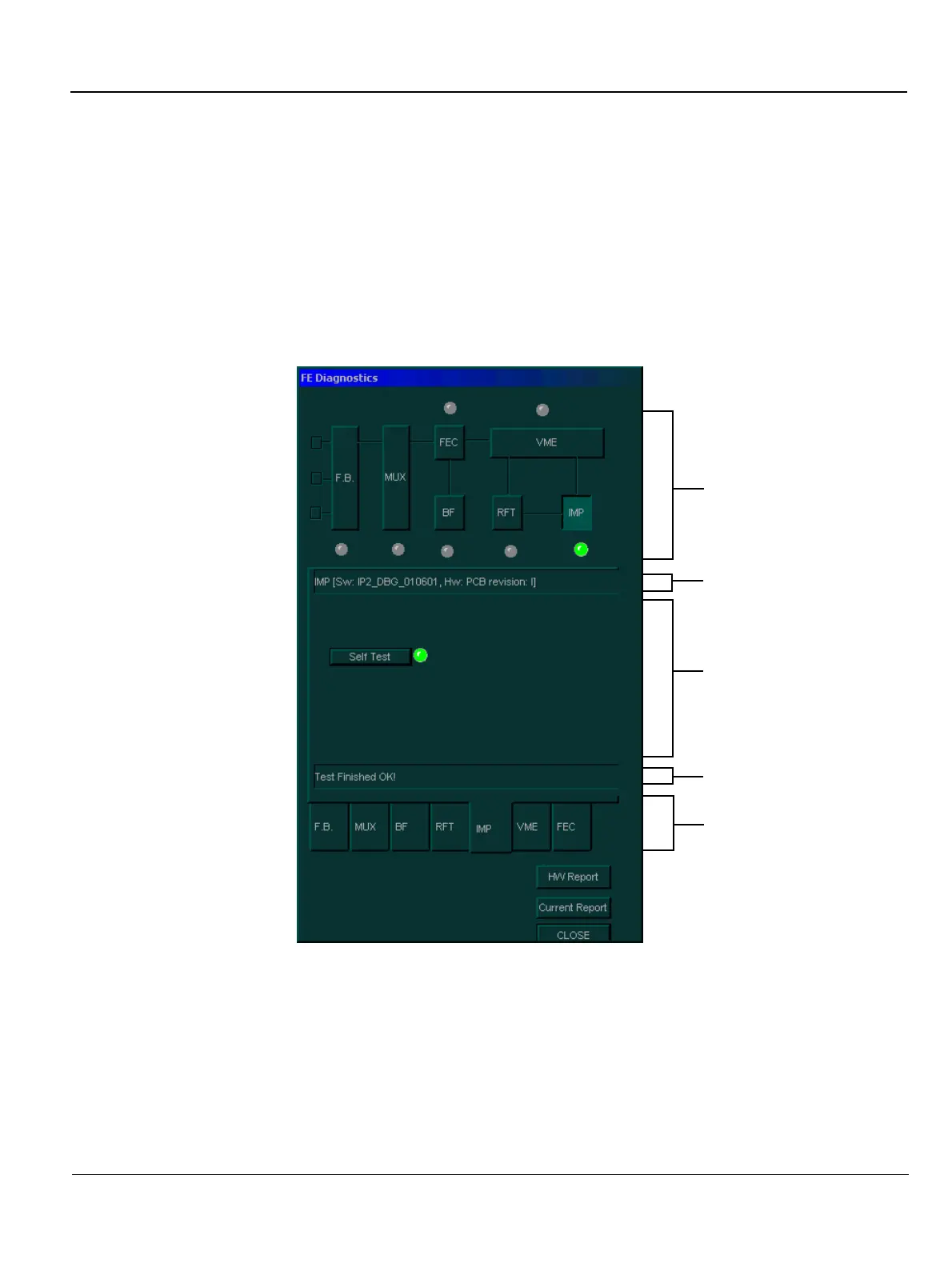 2) In the FE Diagnostics dialog box, trackball to the IMP tab and press Select,