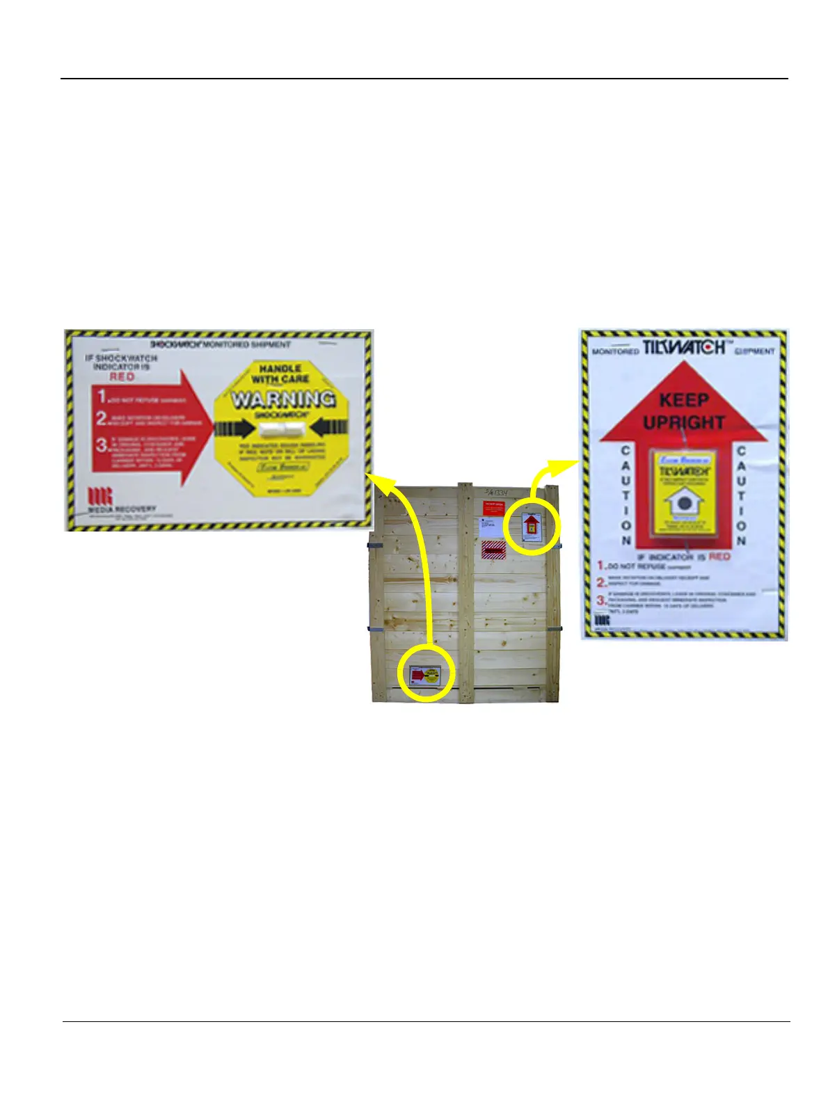 The Tilt & Shock indicators have been attached to the right side of the transportation box as illustrated