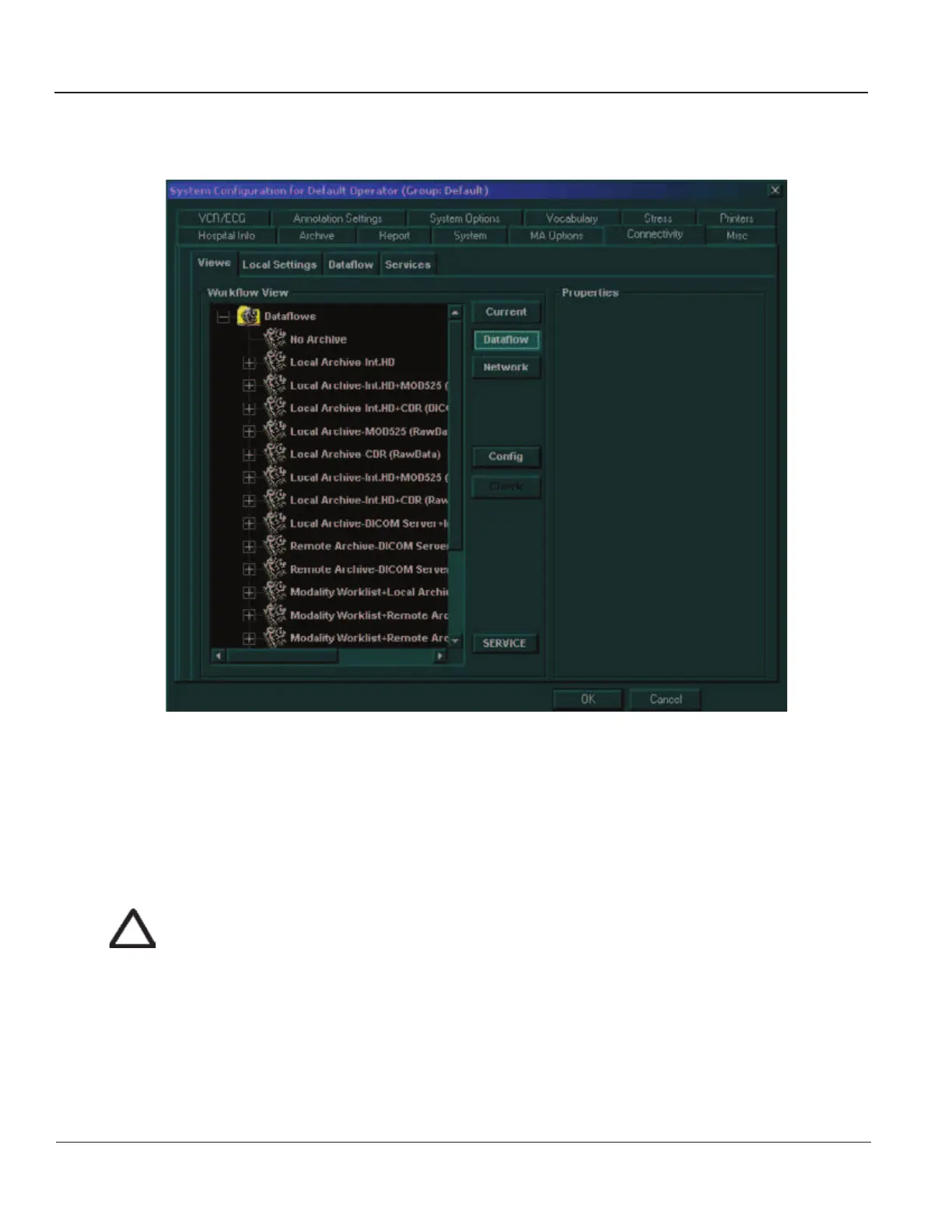 The system’s default dataflow is Local Archive - Int. HD. In this configuration, the Patient List is in the