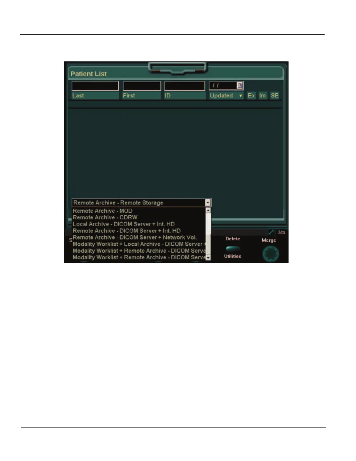 1) Press the Archive button on the control panel. The Patient List window is displayed, as shown below: