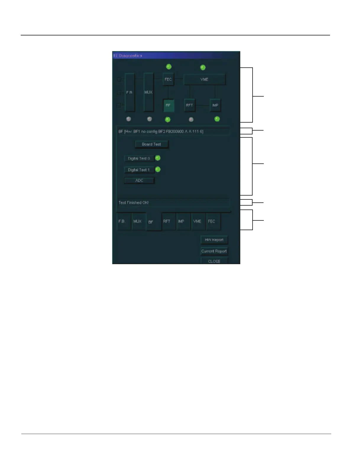 5) Trackball to the ADC button and press Select. The beamformer digital test and ADC bit tests are