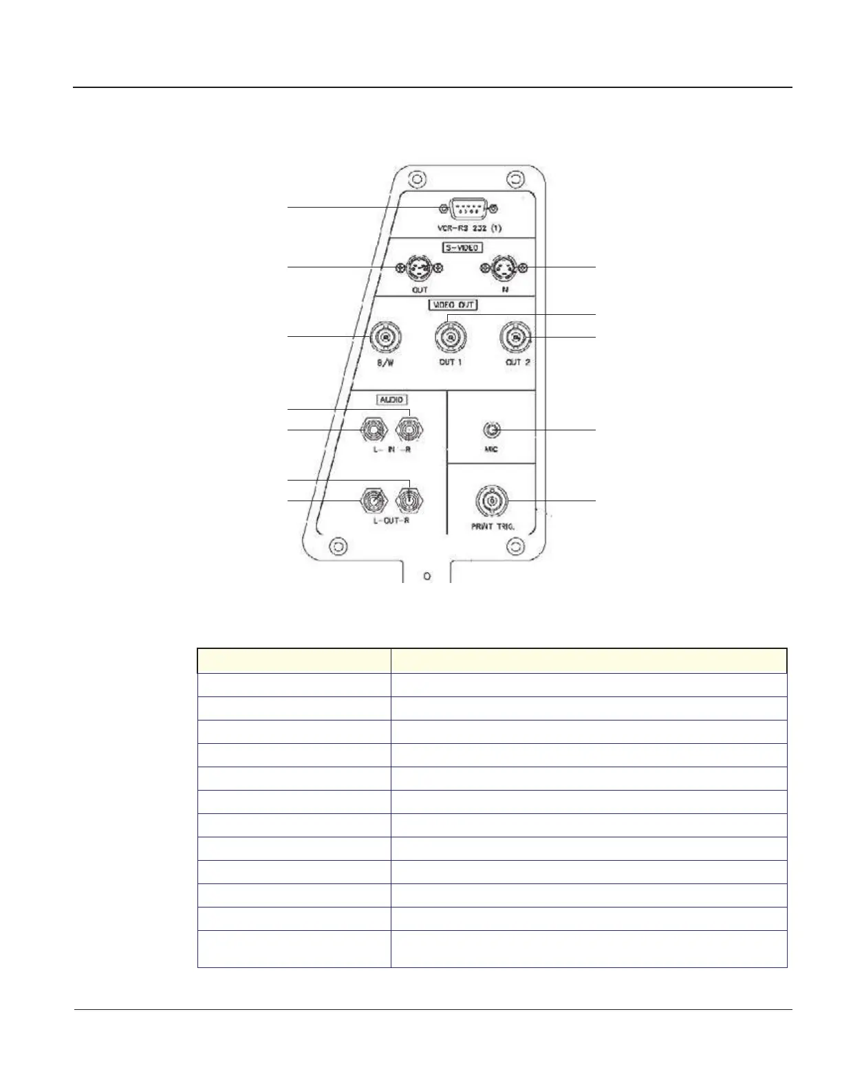 4. VIDEO OUT B/W BNC connector for composite B/W video output to a hard copy printer.