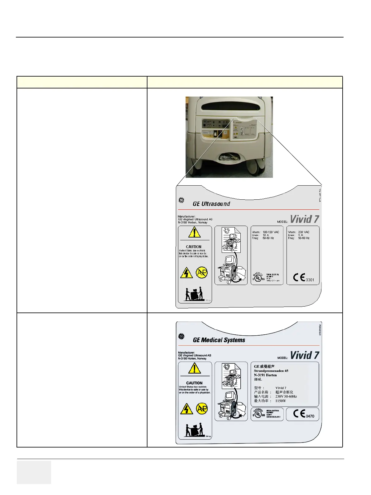 Table 1-19    Label on Rear Cover - Vivid 7 for China