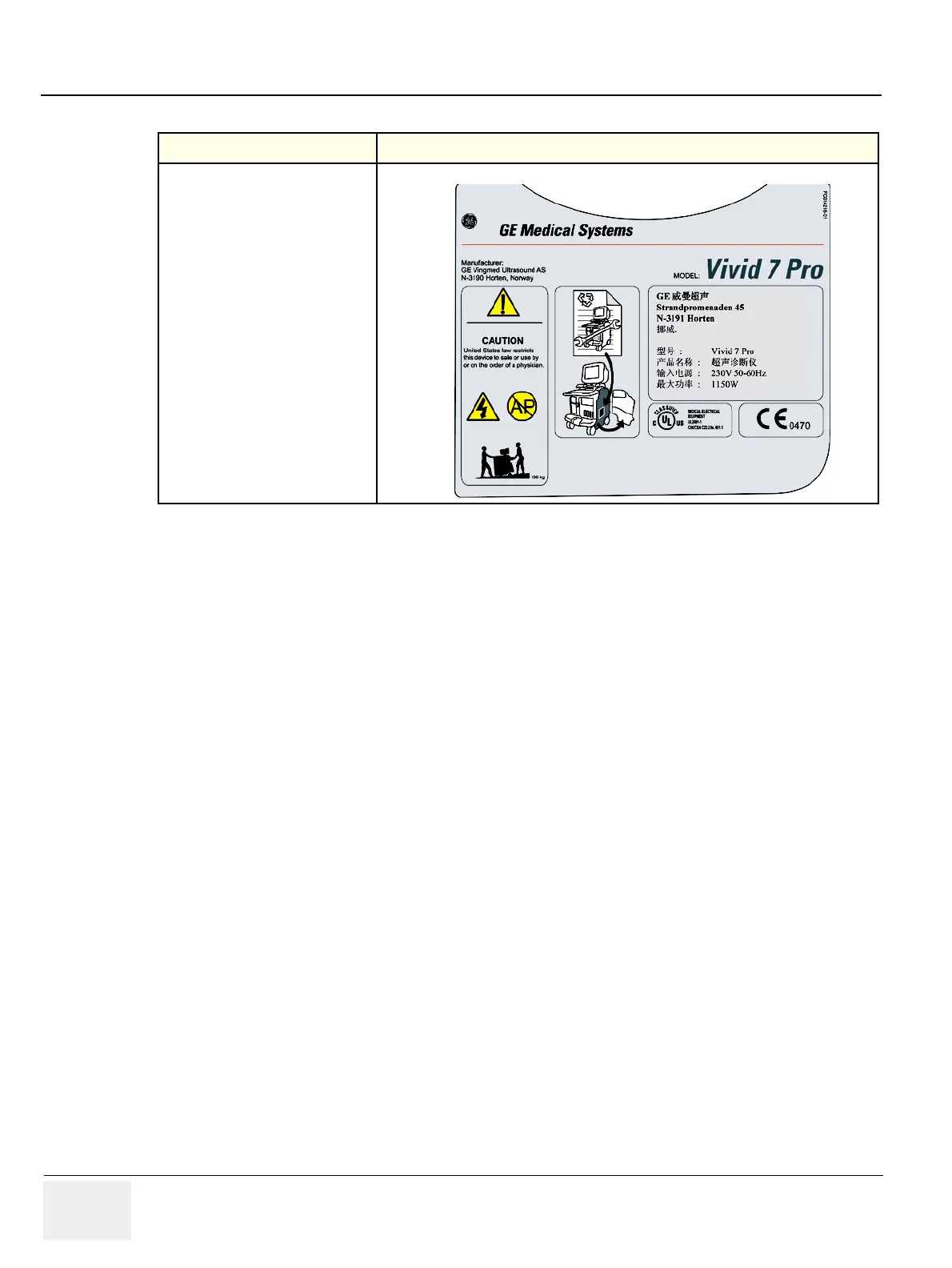 Table 1-20 Label on Rear Cover - Vivid 7 PRO for China (cont’d) sheet 4 of 4