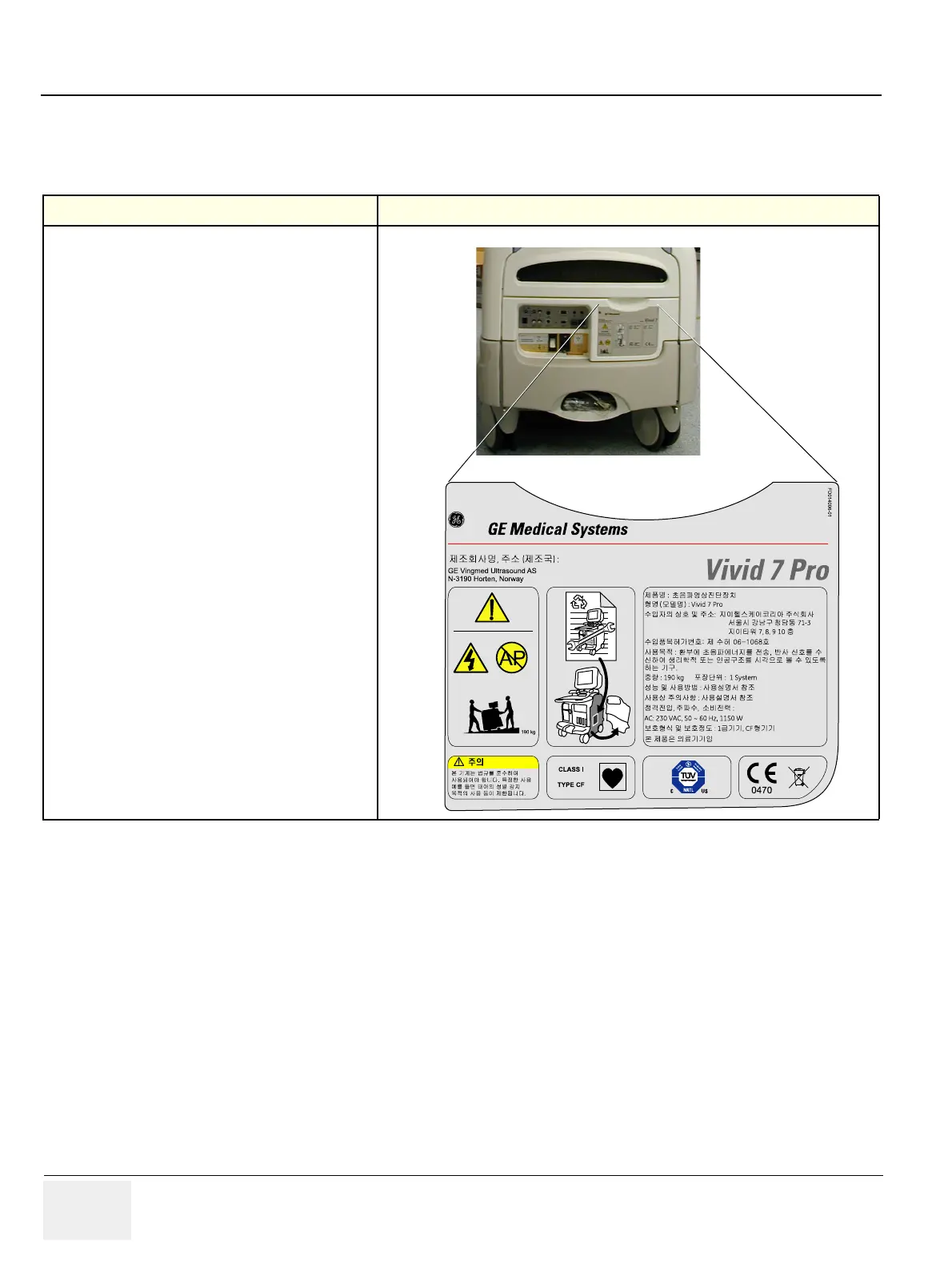 Table 1-22 Label on Rear Cover - Vivid 7 PRO for Korea