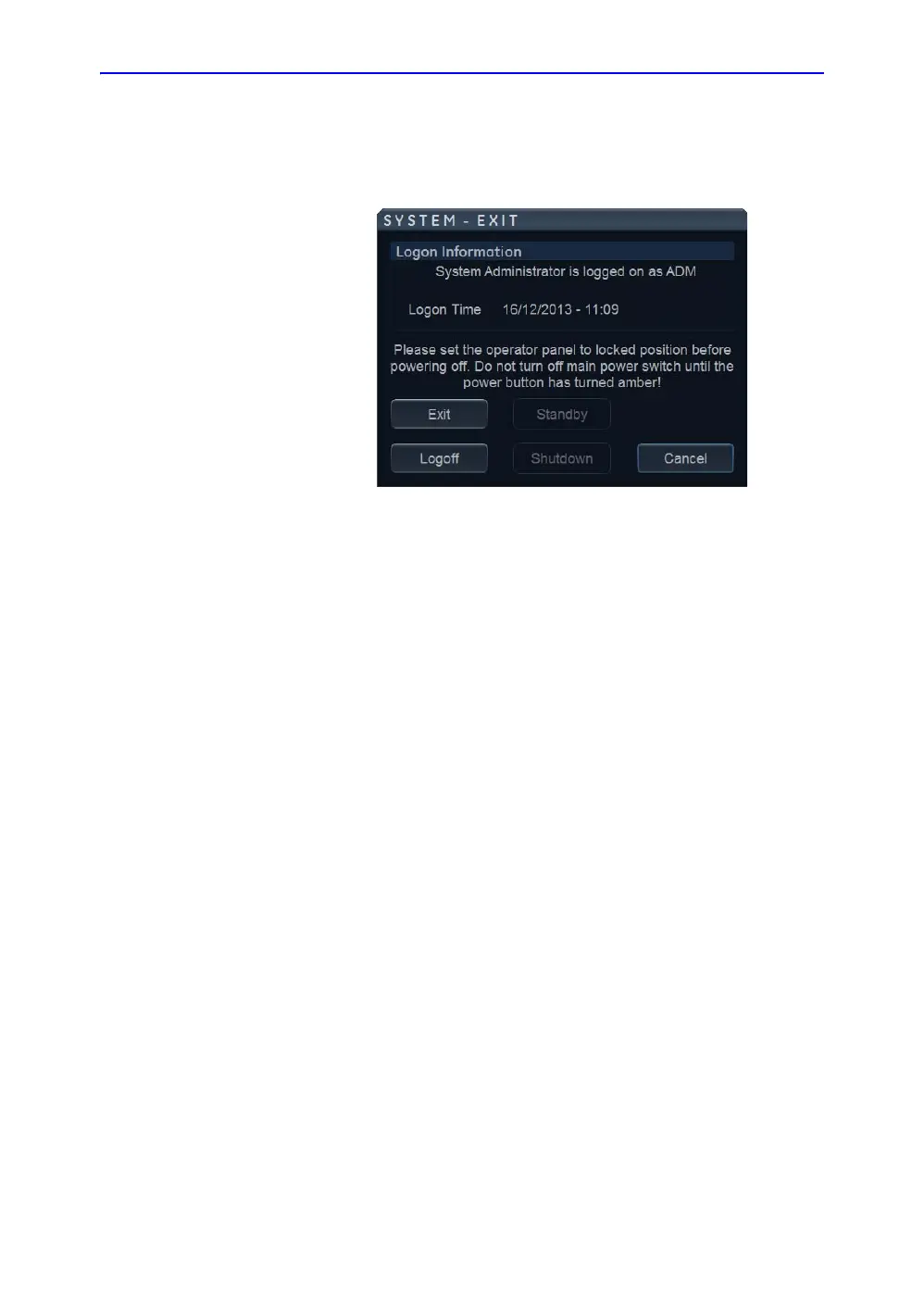 When you switch off the Ultrasound system, the Ultrasound
