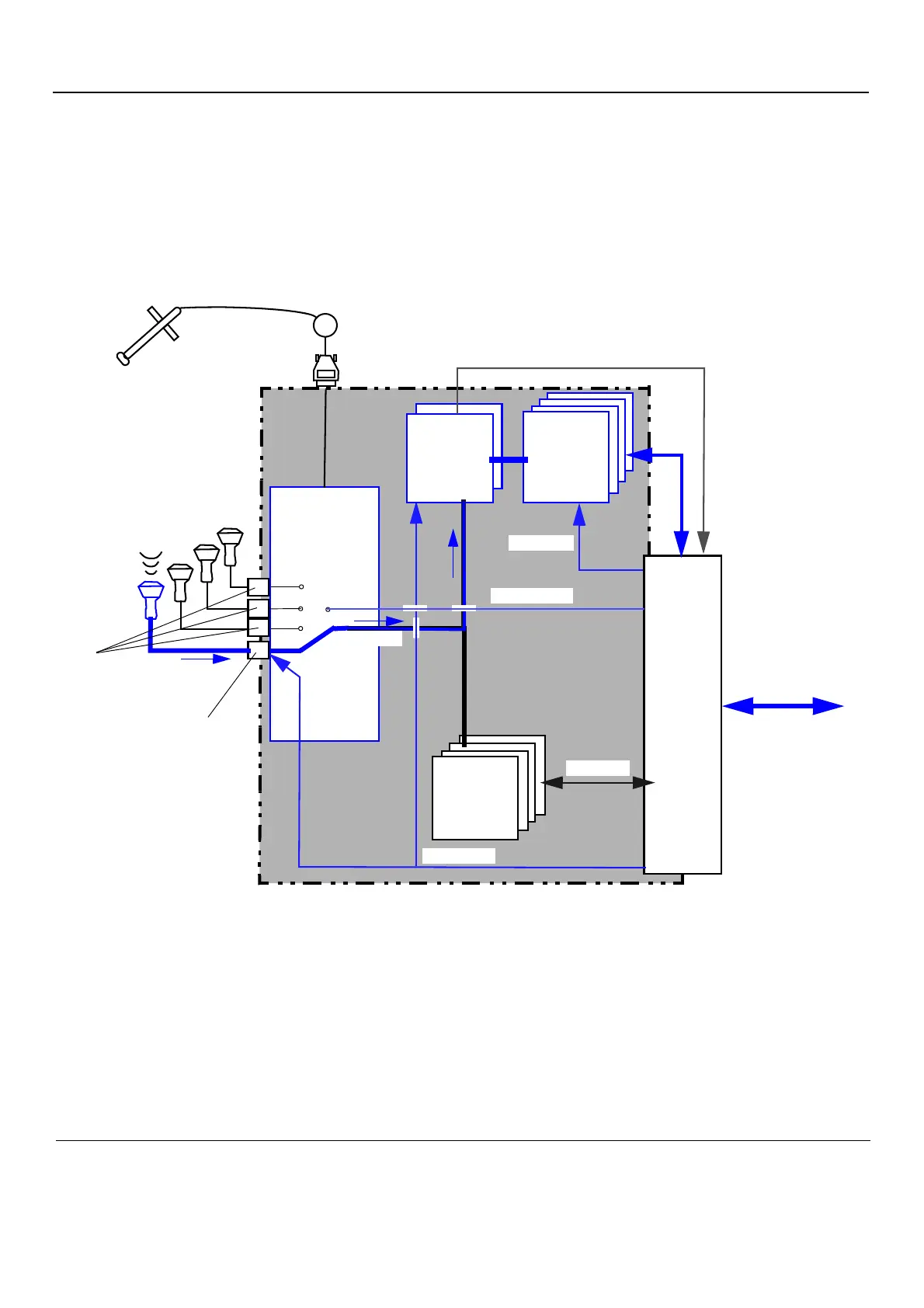 • The reflected signal from body structures and blood cells are routed from the probe, via the Relay