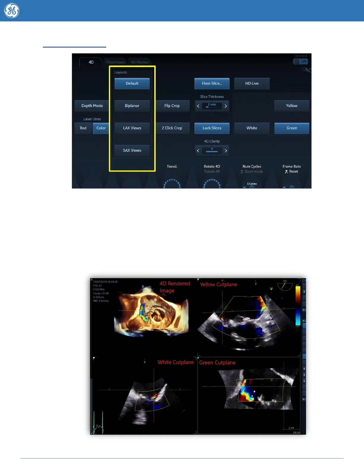 plane for the 4D image. The volume rendering is updated accordingly. The example below shows