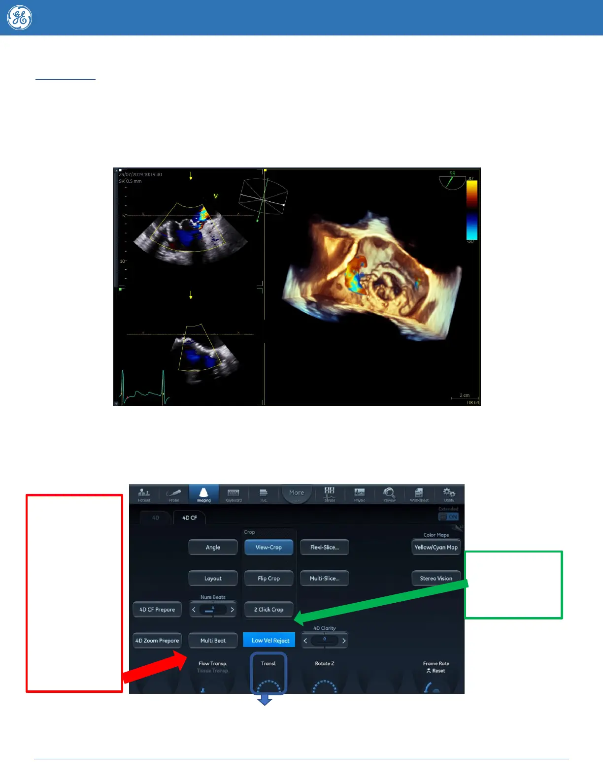 To optimize your viewing of regurgitant jets use the “Translate” knob to move the viewing plane line