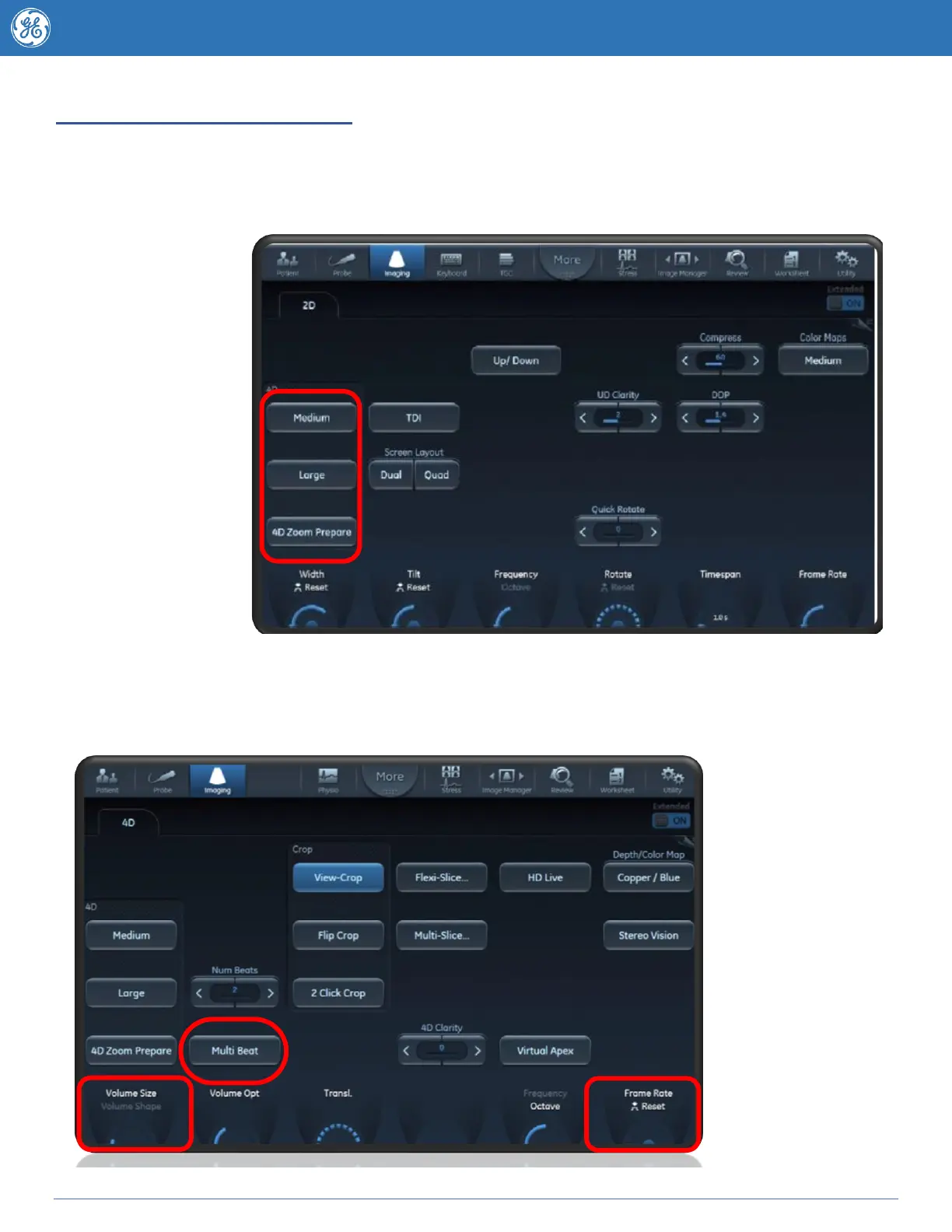 Enter your 4D image by either pushing 4D on the console or pressing Medium or Large on the touch