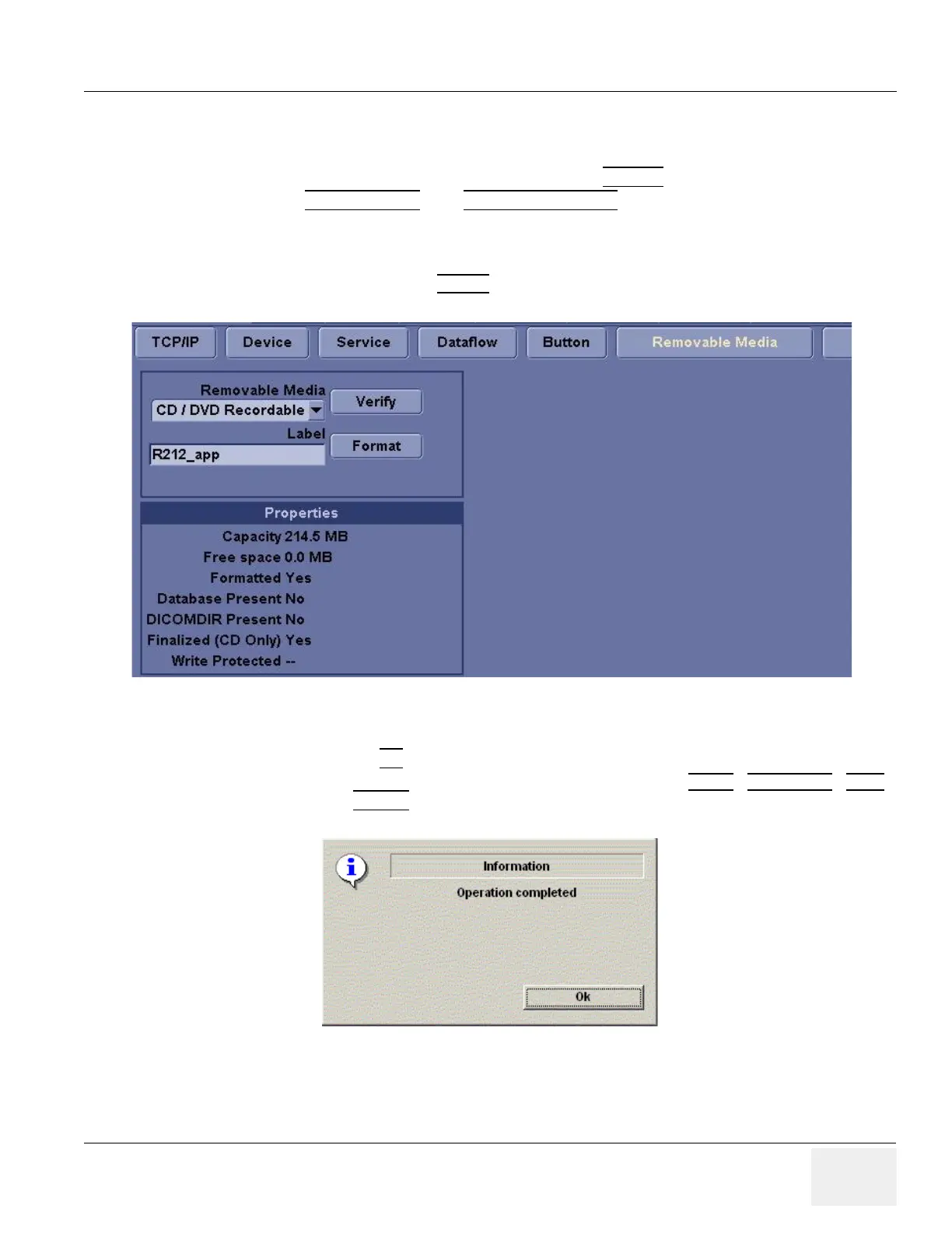 5.) The Ultrasound system displays a pop-up menu, as shown in . When the formatting has been