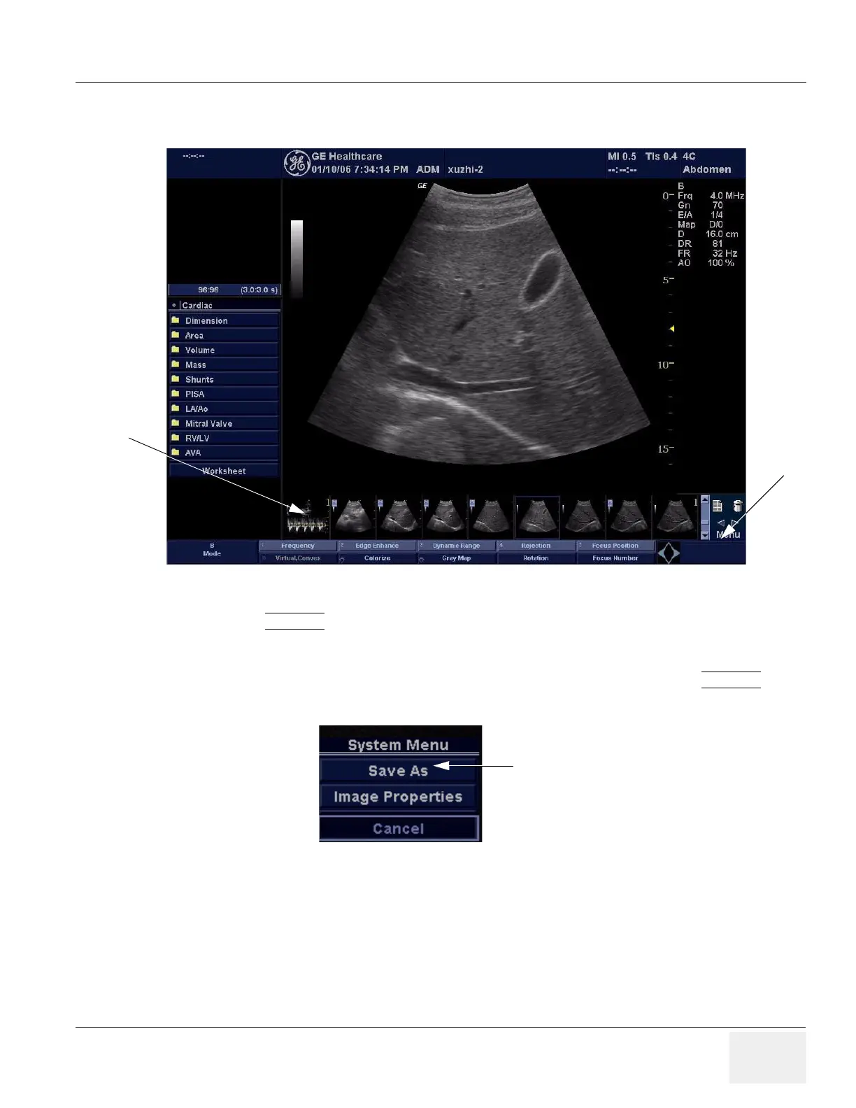 5.) Select Menu on the right side of the image screen, then highlight and select SAVE AS
