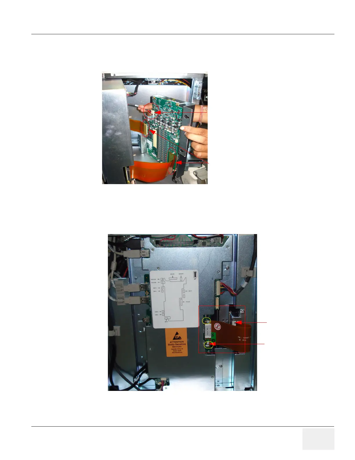 5) Remove the two flexi cable from TX board as shown below in Figure 8-64 on page 8-73