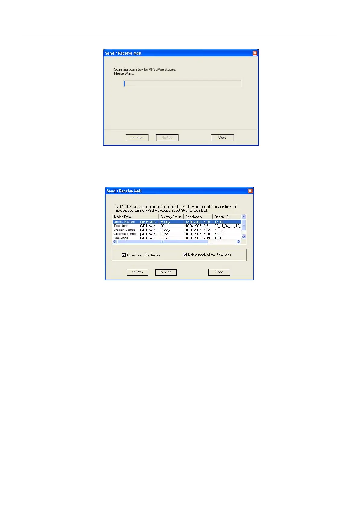 The following message is displayed while the e-mail Inbox is being scanned for studies: