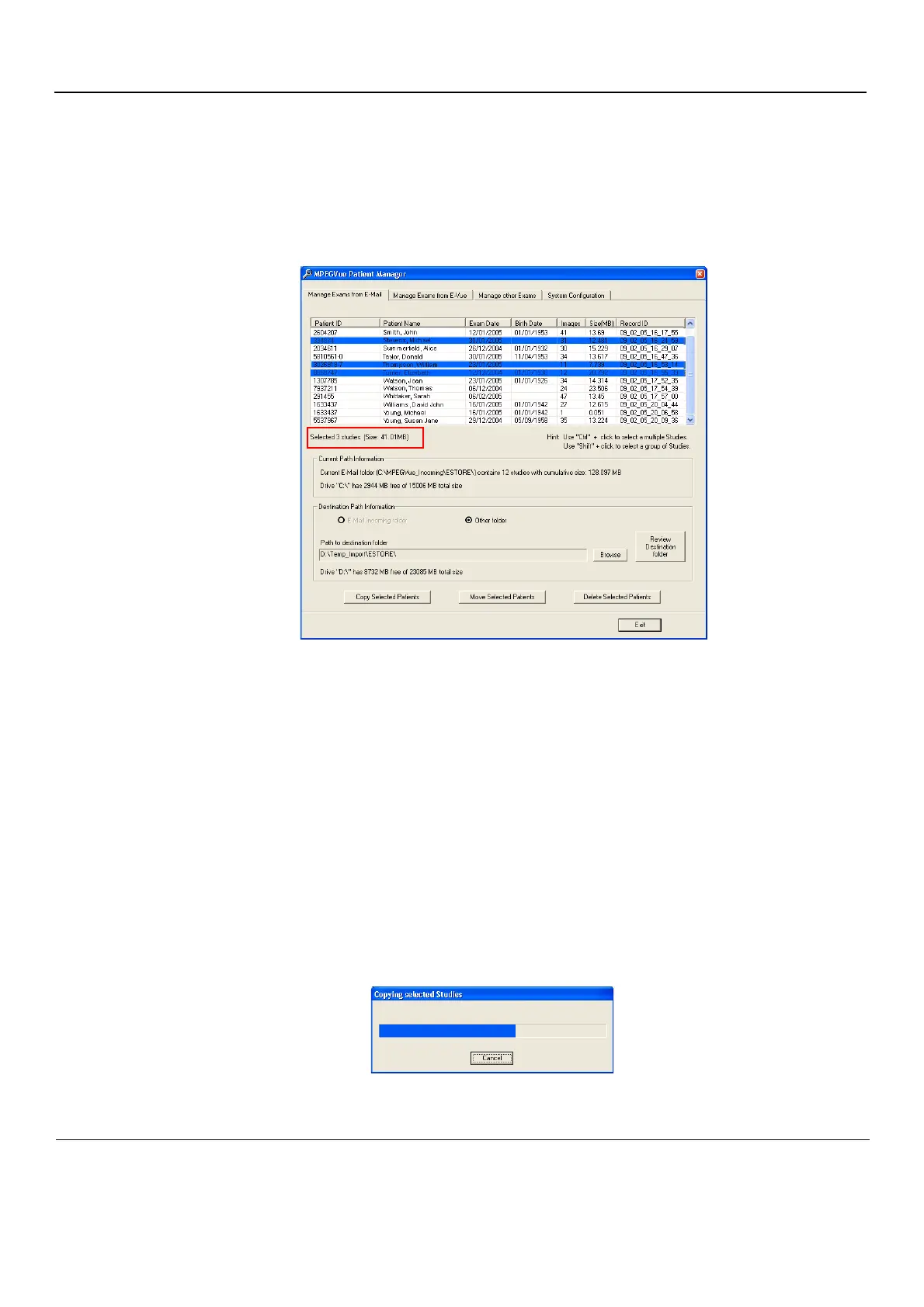 destination folder, then click the Copy Selected Patients or Move Selected Patients button