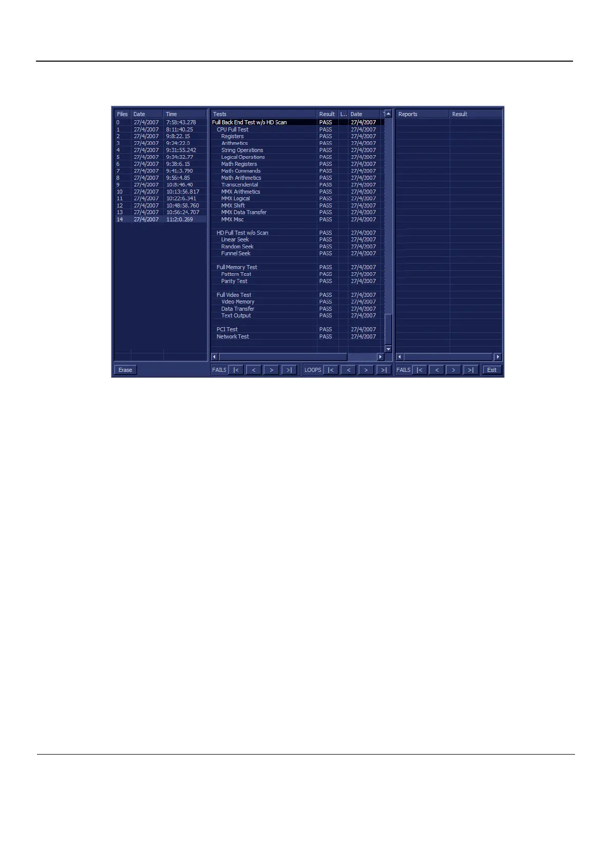7.) Use the scroll bars and/or arrows to scroll through the list of Test results and review the reports, as