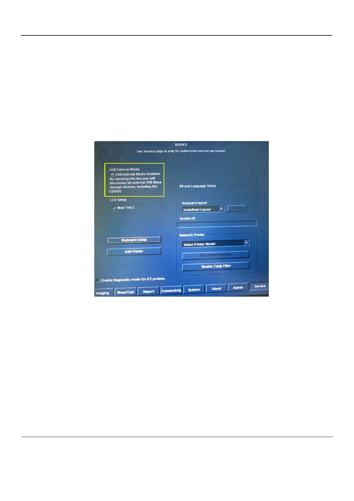 NOTE: After disabling all Vivid S5 N / Vivid S6 N scanner USB ports, all peripherals that are used by connecting