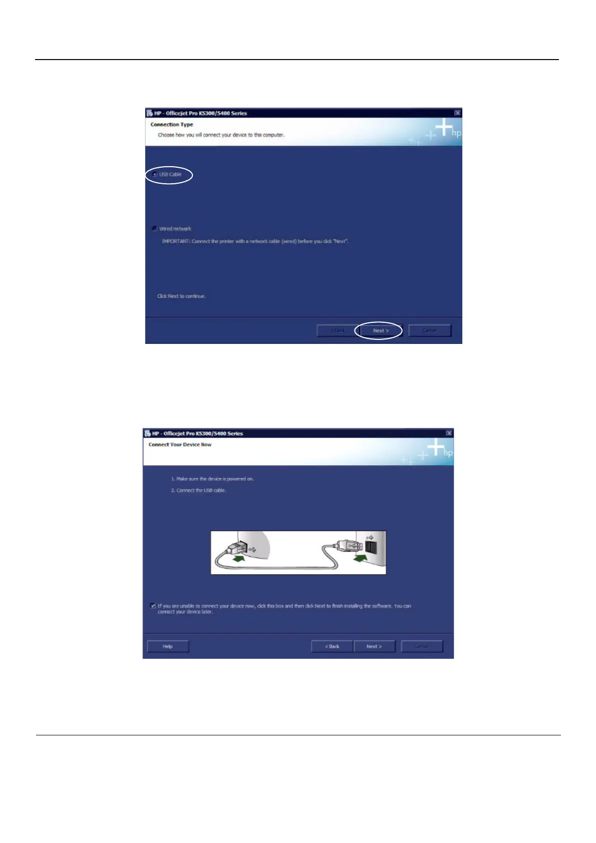 6.) Select the USB cable option for connecting the device to the computer, then click Next - see
