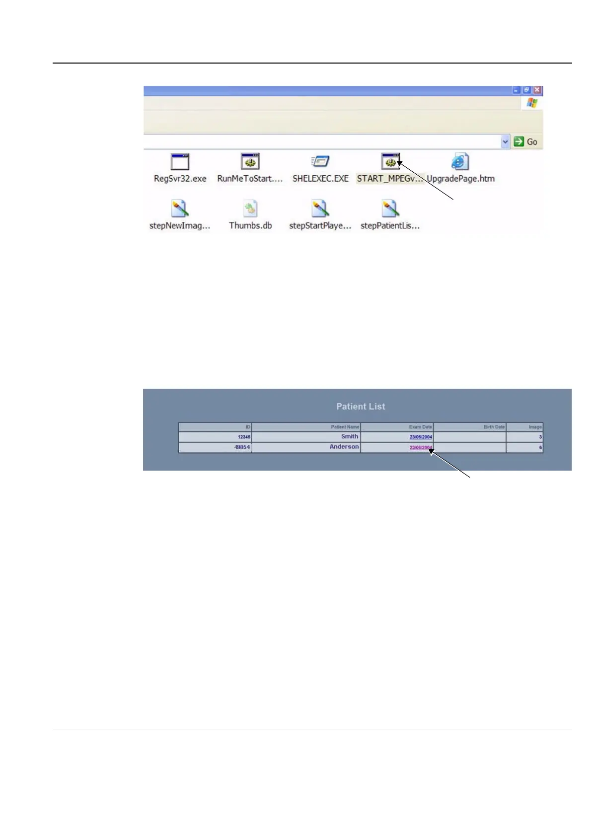 4.) From the Patient List, double-click on the required examination Exam Date (see the example