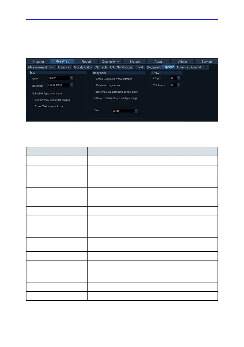 Sets the Bodymark Touch panel as default page when pressing Text on
