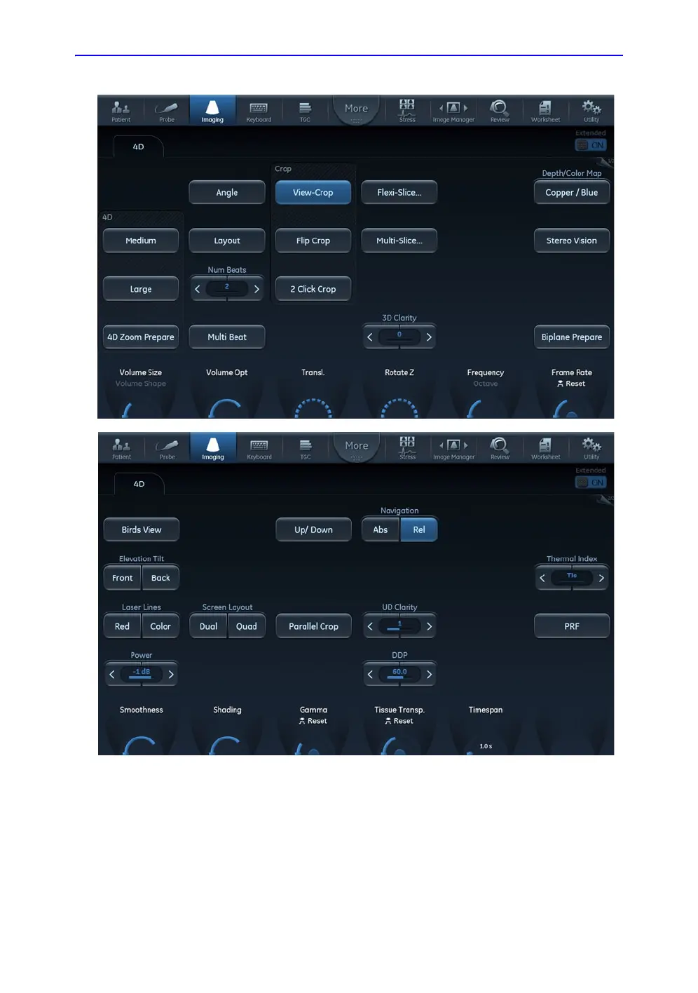 Figure 6-2. 4D Touch panel (4D probe Live) page 1 and 2