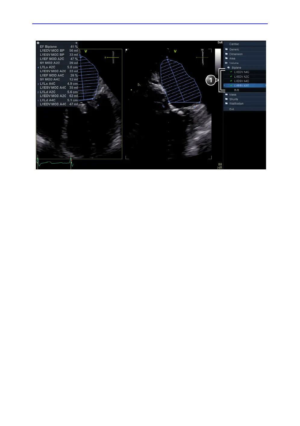 Figure 8-32. The Volume measurement screen (Bi-plane)