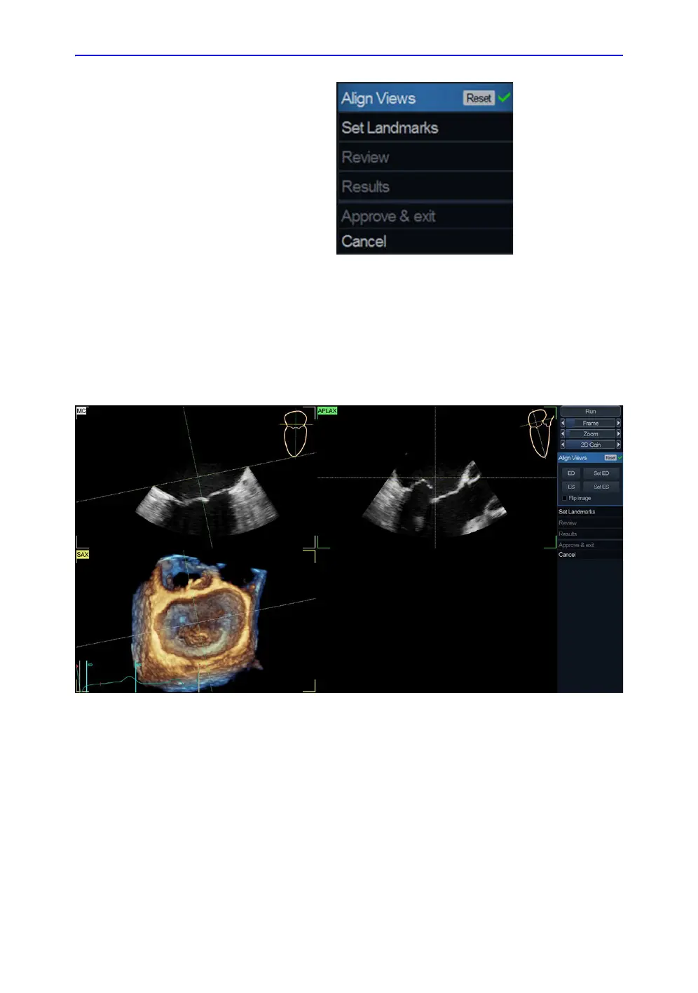 Align Views stage presents to the user two long axis slices
