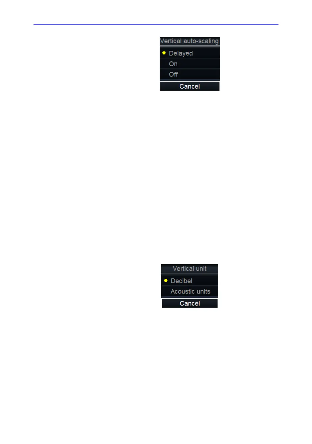 either logarithmic scale (dB) or linear, acoustical units (AU) for