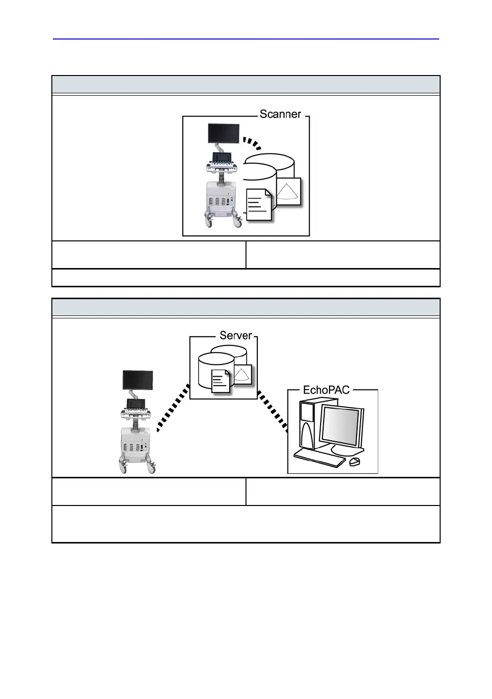 In this scenario the Vivid S70 / S60 is configured to work with an ImageVault patient demographics and