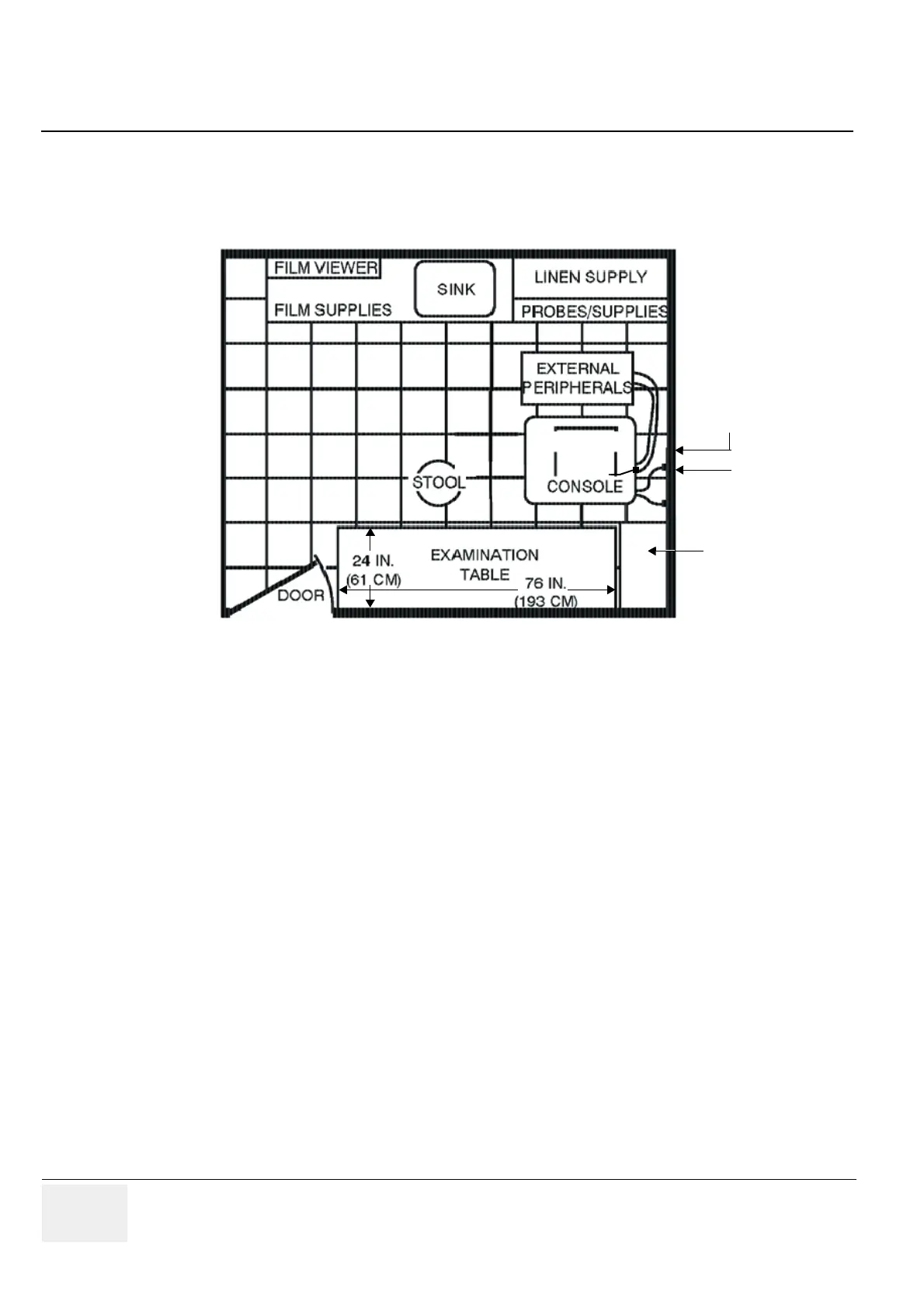 Figure 2-1 below shows a floor plan illustrating the recommended layout of the Ultrasound Room and