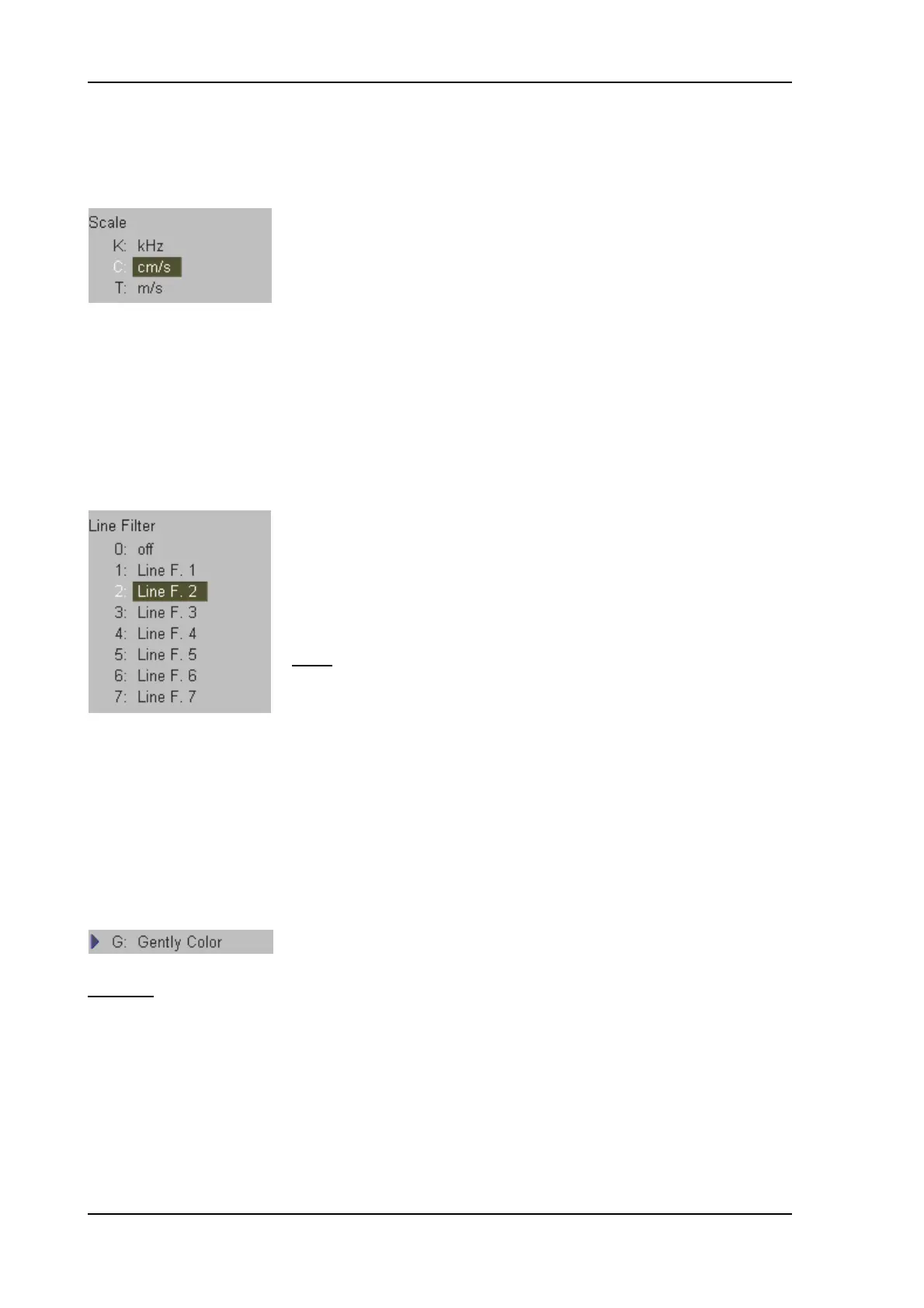 With [Gently Color] the embedding of the color into B-Mode is performed smoothly with less color
