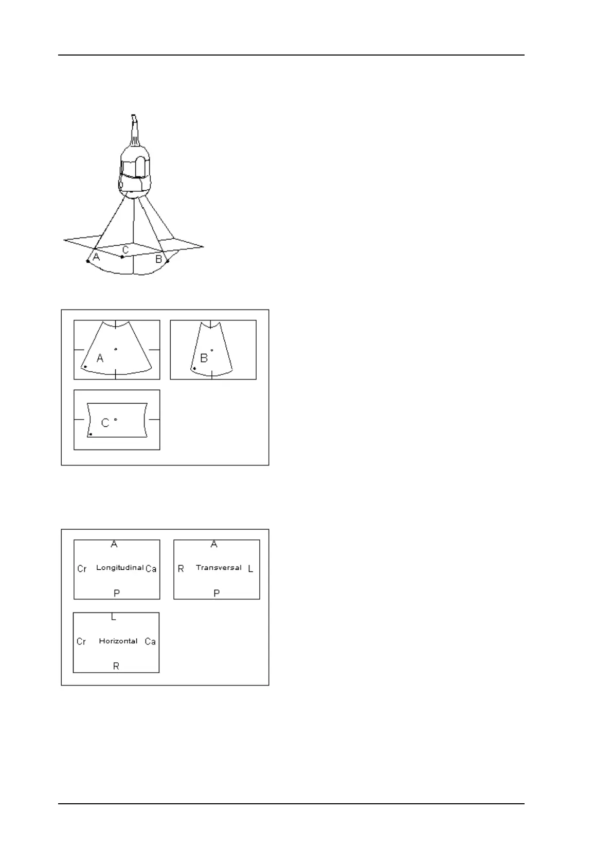 The sectional image A represents that 2D image, from which the volume acquisition was begun.