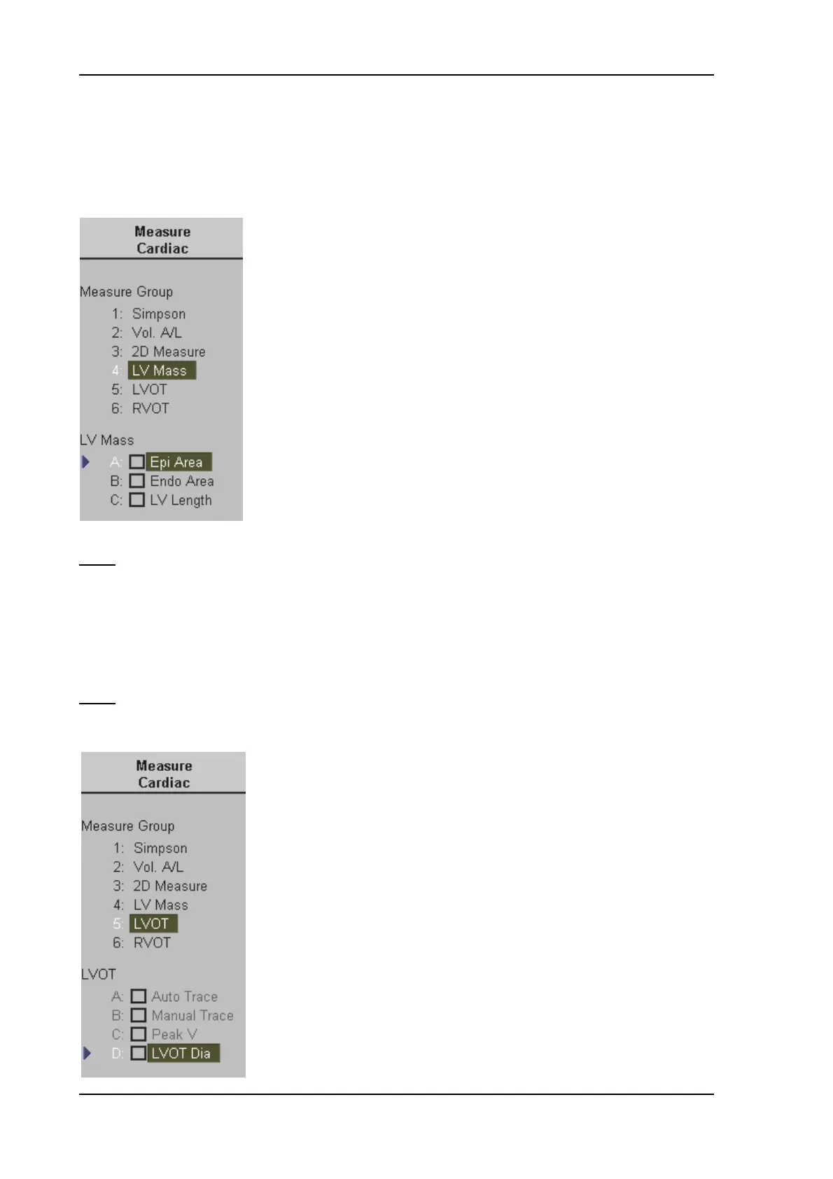 2. Select [LVOT] or [RVOT] and [LVOT Dia] or [RVOT Dia].