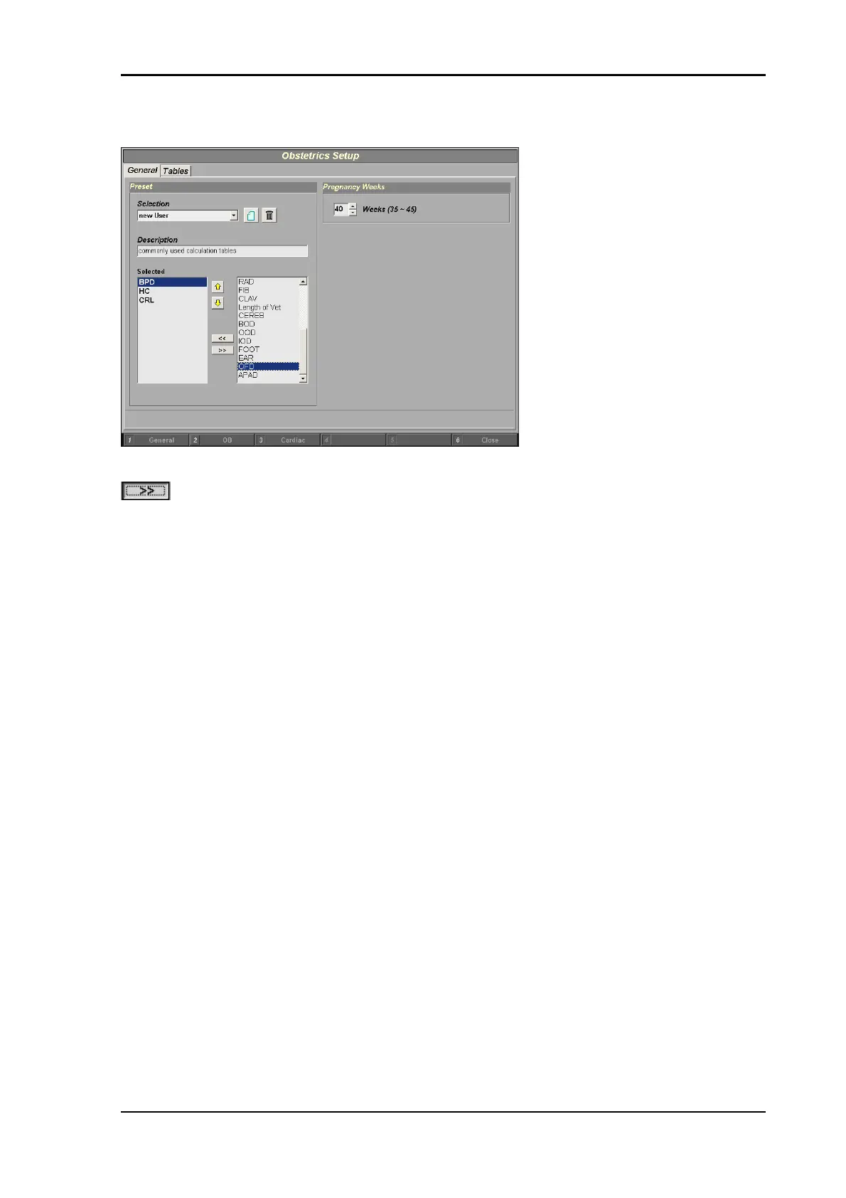 If a measurement is selected in error click the [Right arrow] button to return the selection.