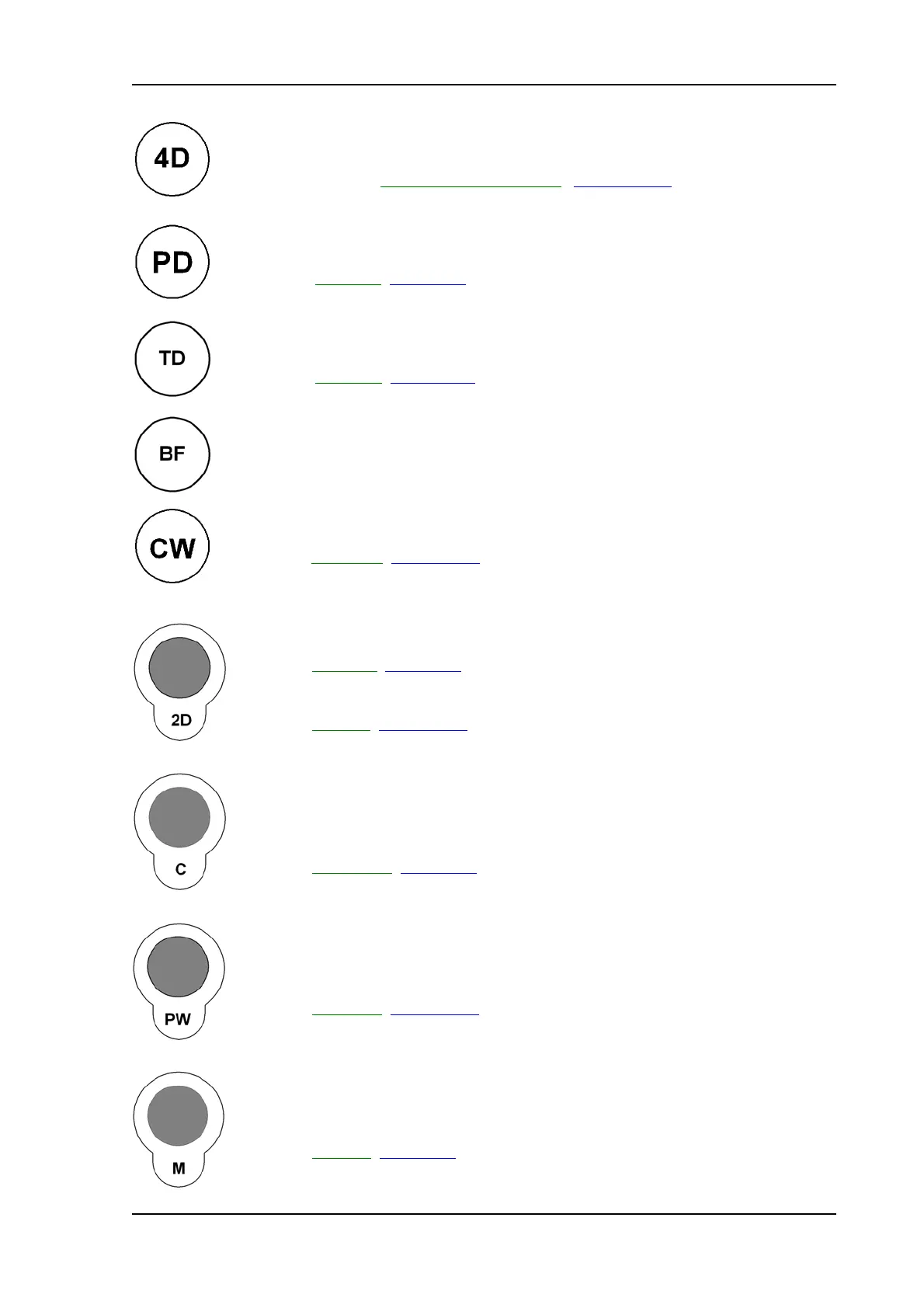 Pressing starts the PW Doppler mode provided the active probe allows function.