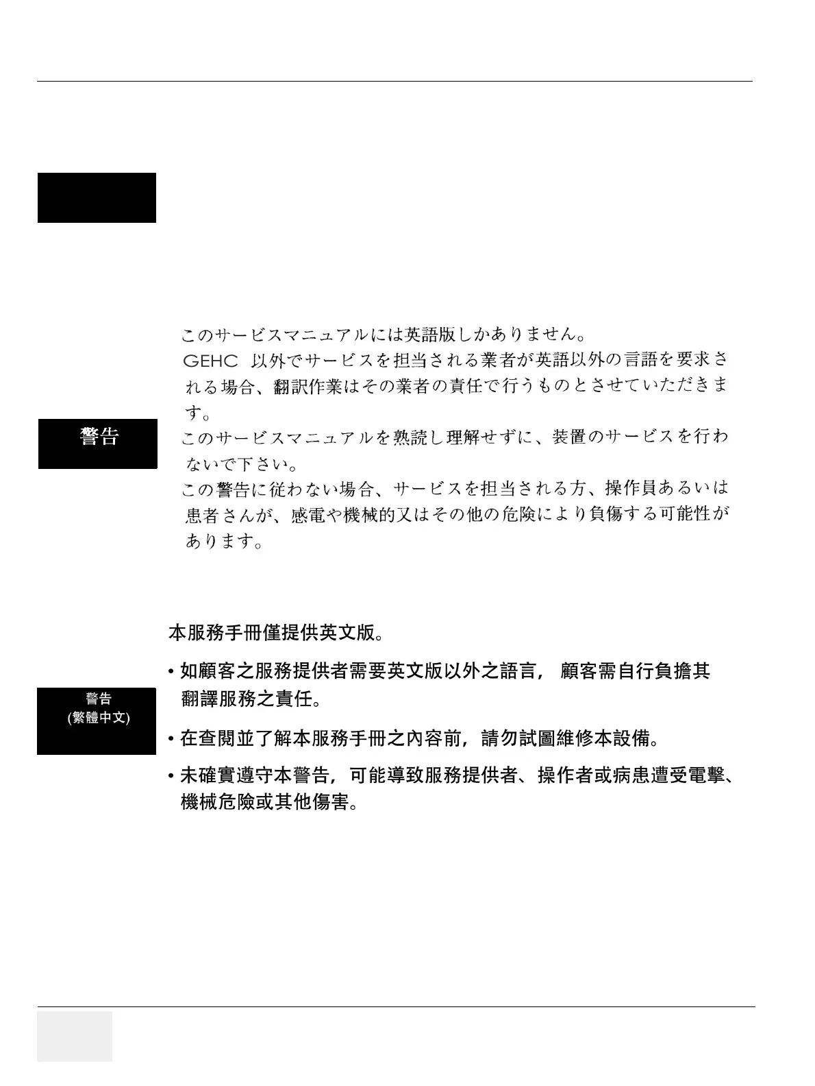 •EĞER MÜŞTERİ TEKNİSYENİ KILAVUZUN İNGİLİZCE DIŞINDAKİ BİR DİLDE